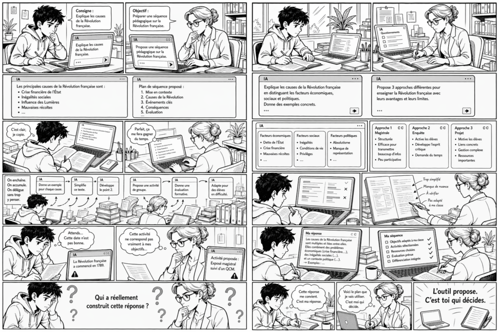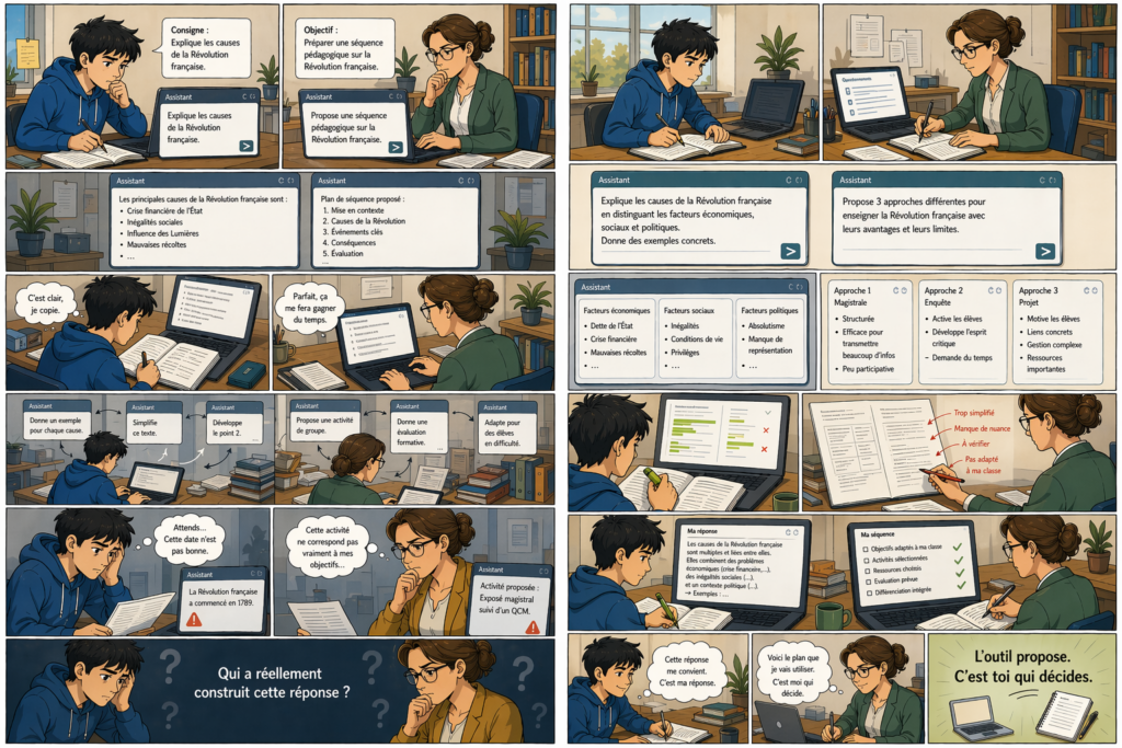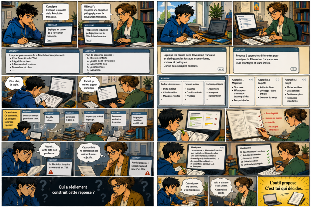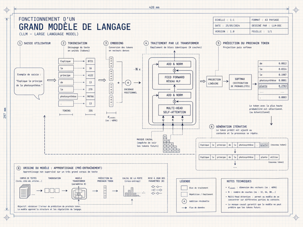 La construction peut s’effectuer pas à pas via le chatbot et le modèle de langage puis être générée et modifiée.