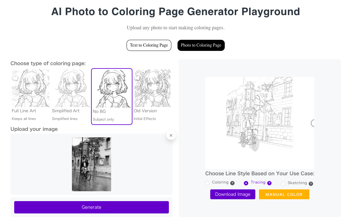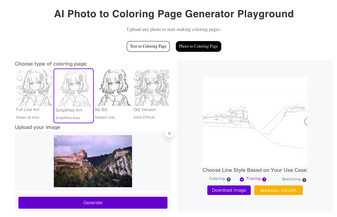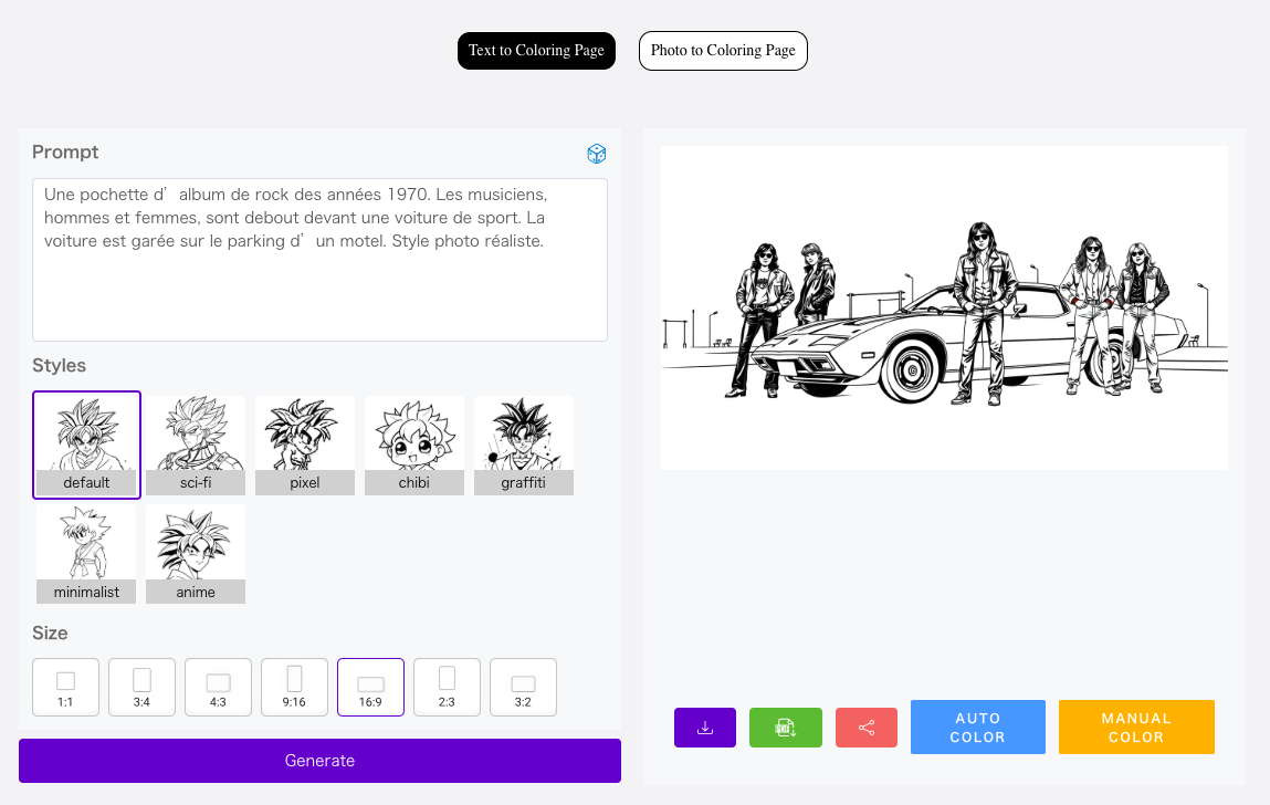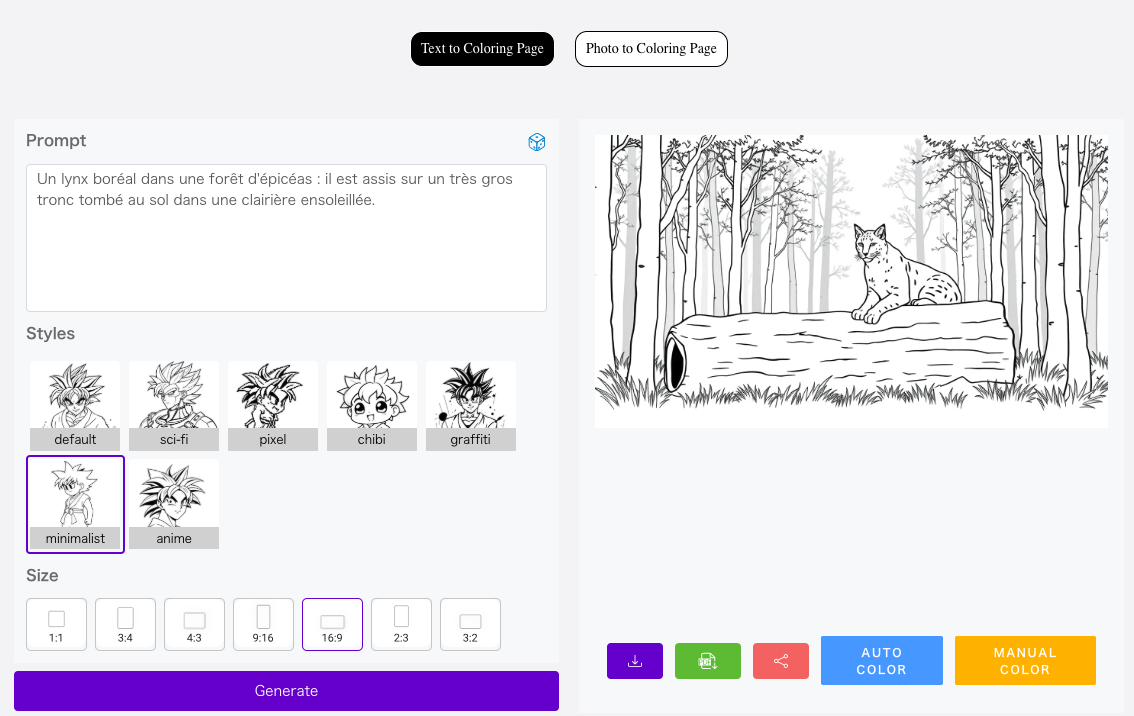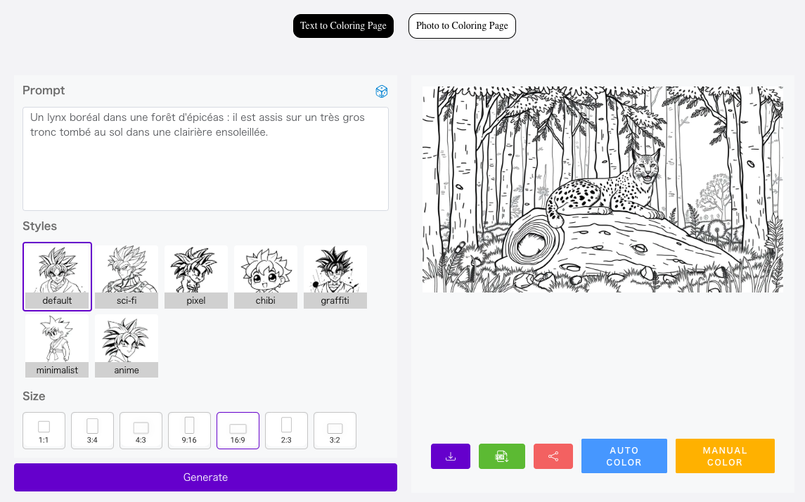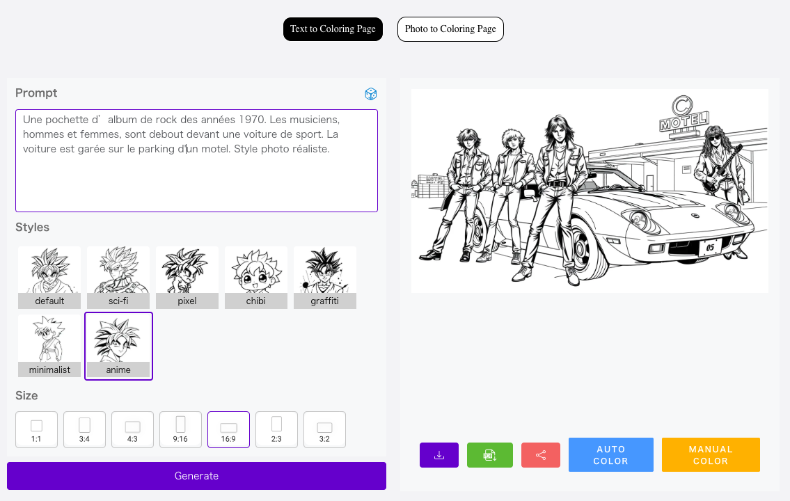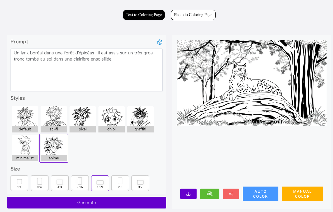 ColorifyAI (https://colorifyai.art) génère des dessins à colorier à partir d’une instruction ou d’une image.