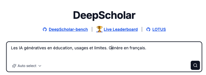 Test « Les IA génératives en éducation, usages et limites » : https://deep-scholar.vercel.app/dashboard/research/828e3e3d-8766-49d9-83c6-3d7c7e229a89