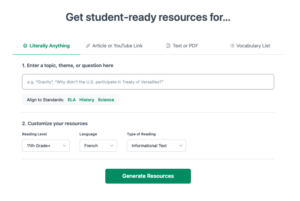 Diffit (https://app.diffit.me/) propose de transformer le cours généré en activités pour les élèves / étudiants.