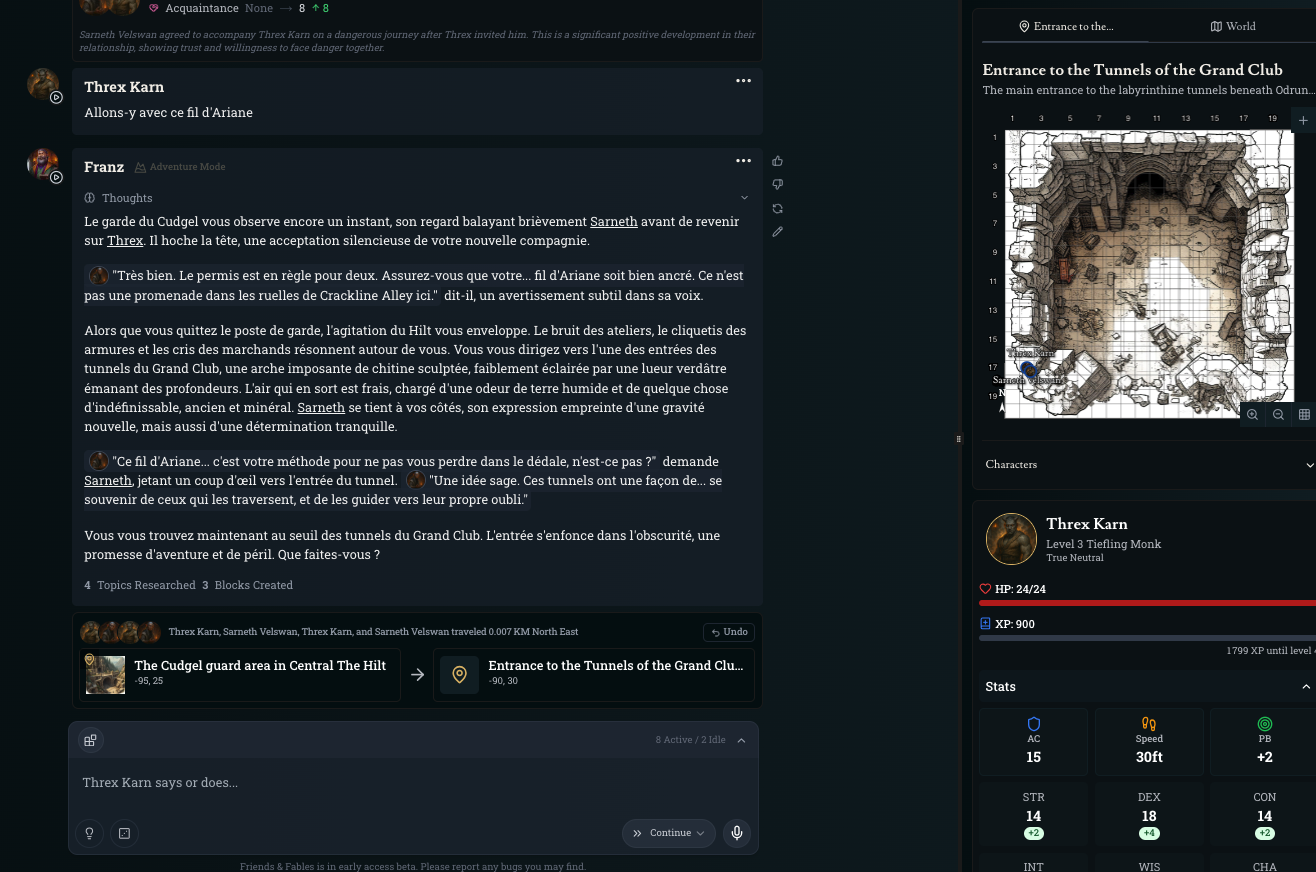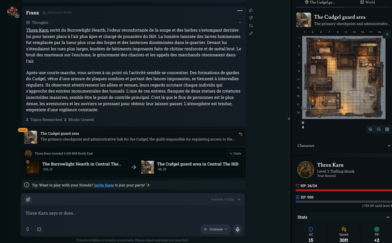 Friends & Fables (https://fables.gg/) regroupe des jeux de rôle (RPG) textuels autour de mondes et de personnages aléatoires ou créés par les joueurs et « pilotés » ensuite par une IA générative de texte.
