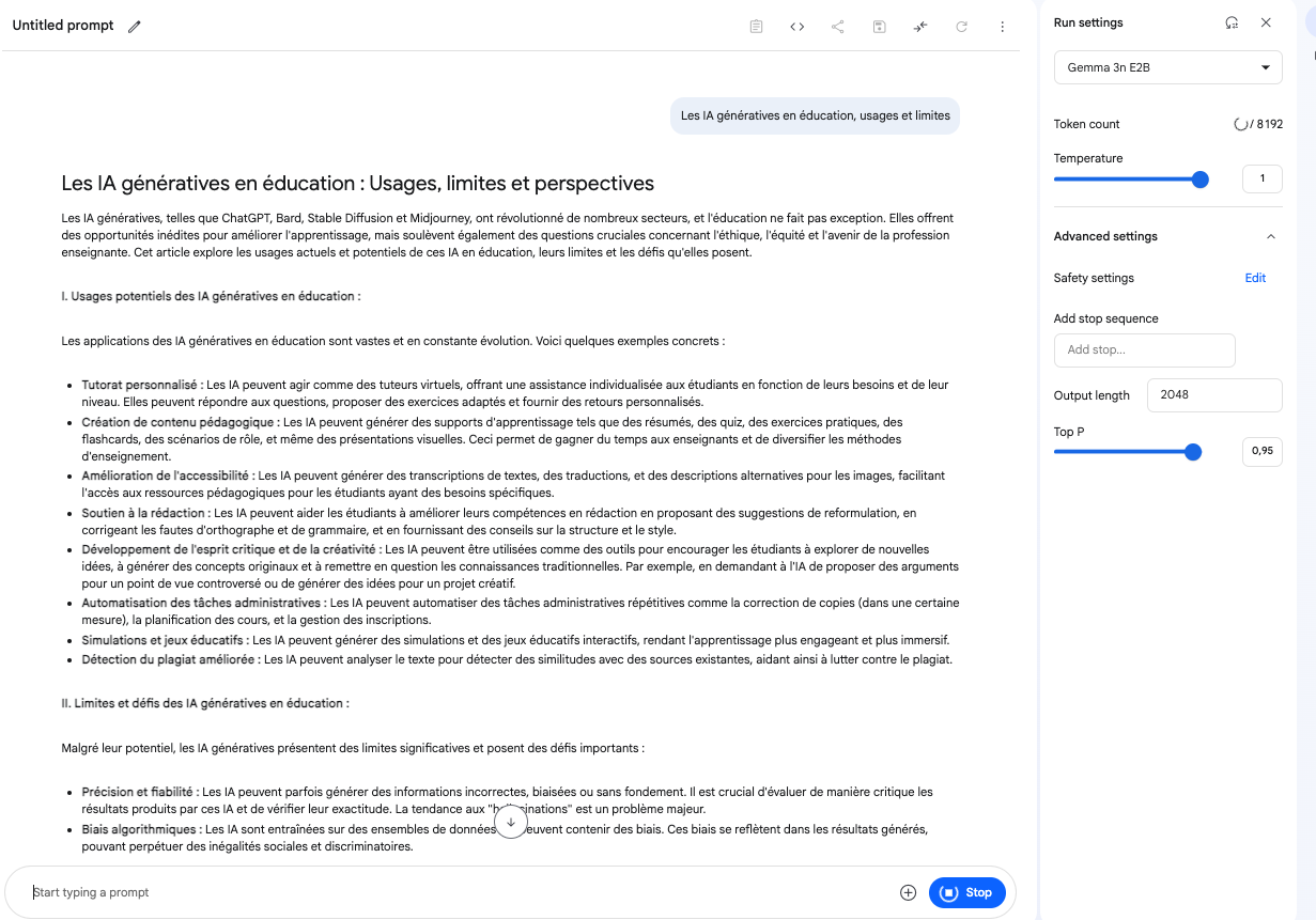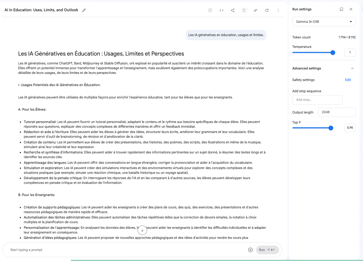 Gemma 3n (à tester dans Google ai studio ou sur les espaces Hugging Face) : deux modèles de langage open source « légers » conçus pour être déployés sur des appareils personnels (smartphones, tablette, ordinateur). Modèles multimodaux.