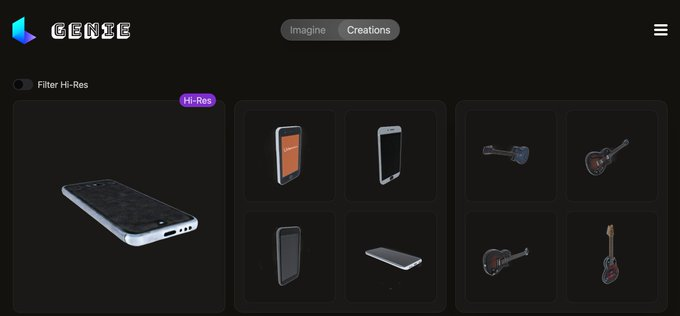 Genie de Luma labs (https://lumalabs.ai/genie) génère des objets 3D à partir d’une requête texte. Galerie avec prompts pour inspiration. Possible conversion en haute résolution et export en 6 formats dont stl pour impression 3D. Gratuit et illimité.