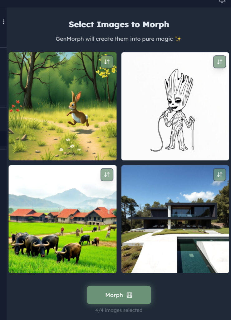 De nombreux filtres IA sont proposés et un mode « morph » génère un film court à partir de 4 images.