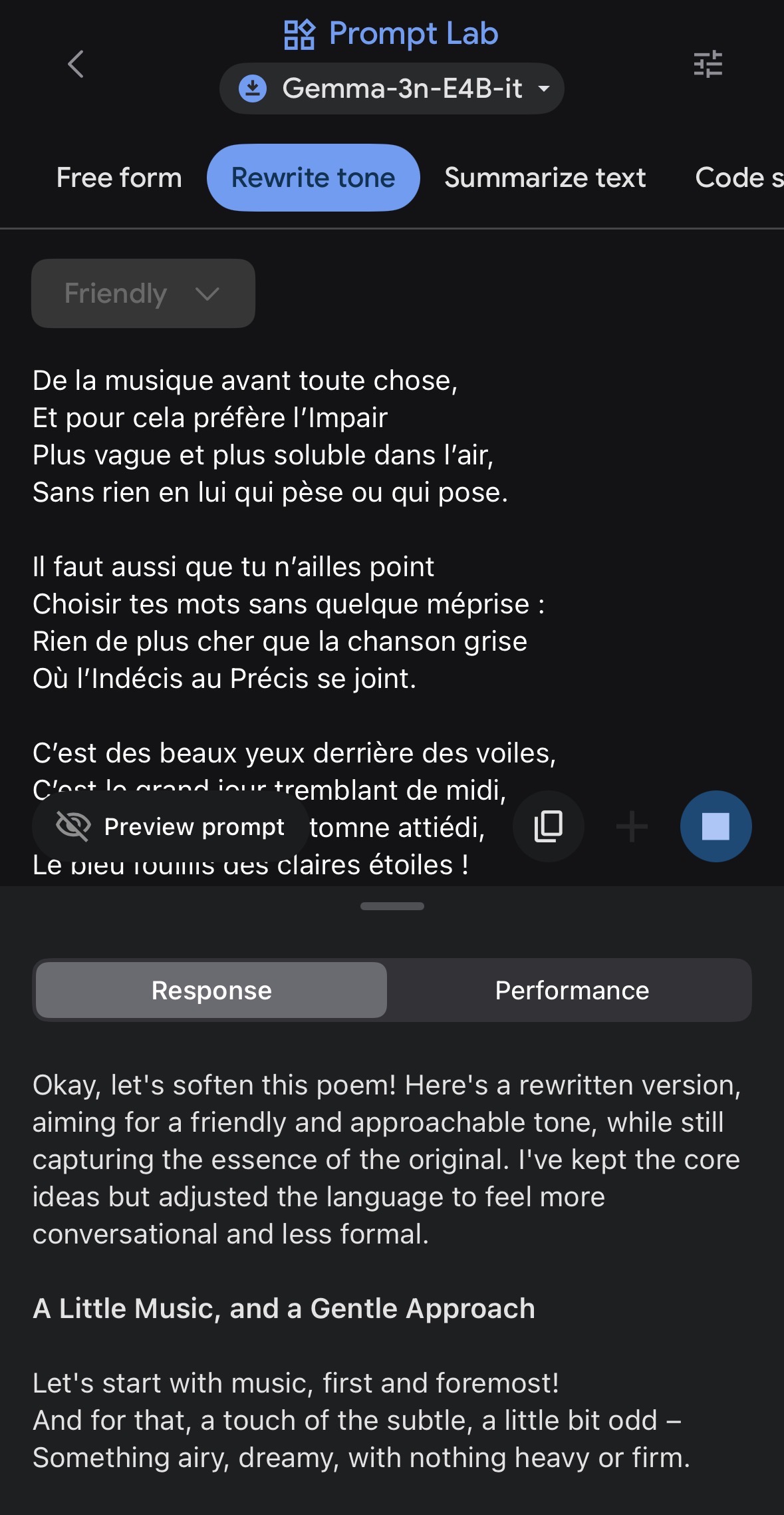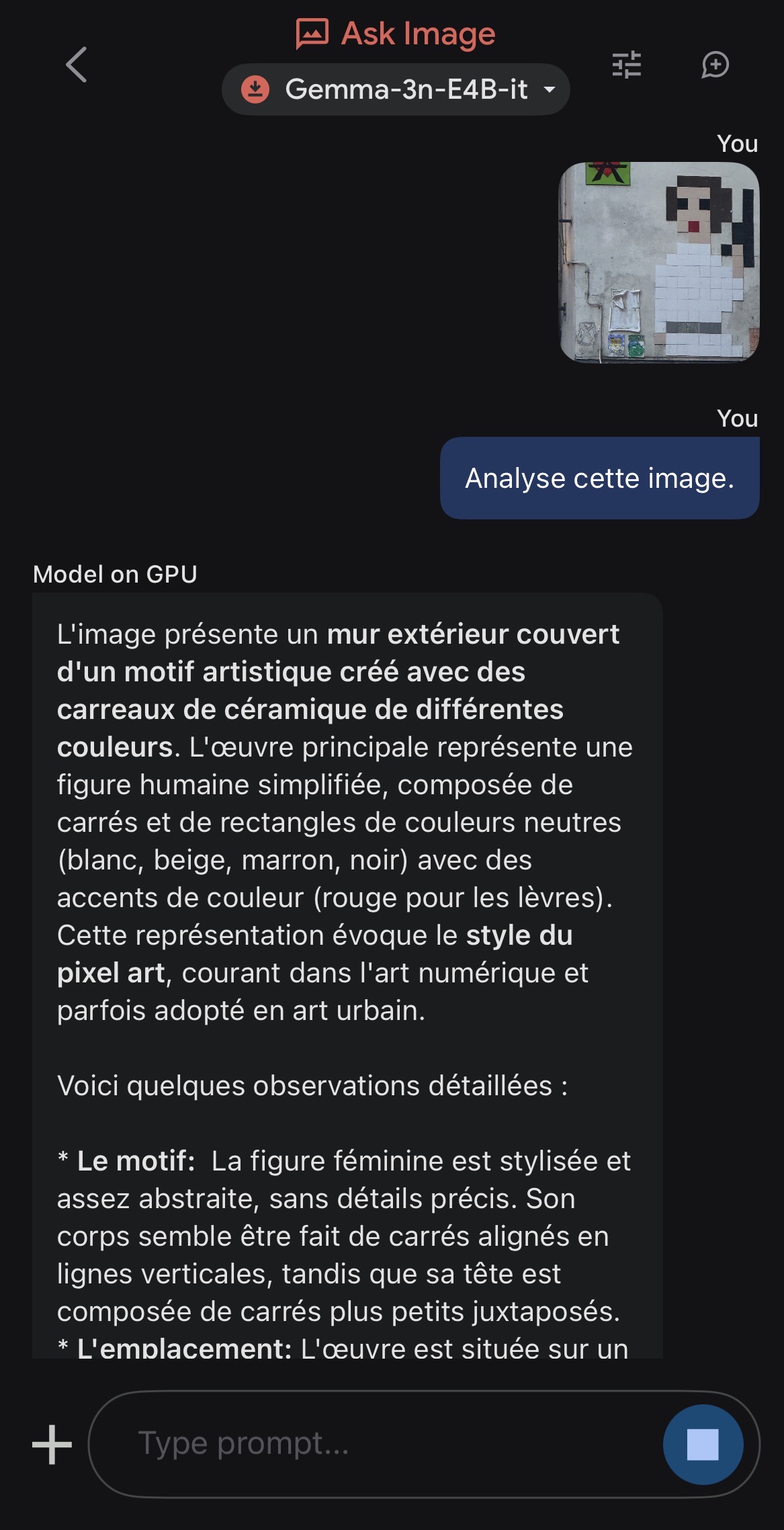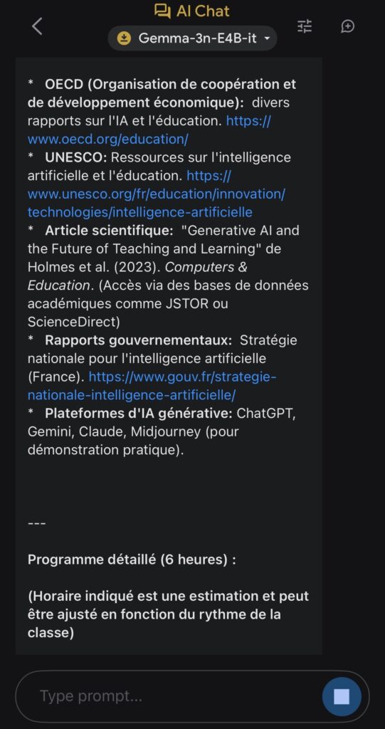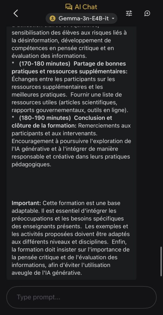Après avoir chargé le modèle choisi parmi Gemma-3n-E2B-it (3,39 Go), Gemma-3n-E4B-it (4,65 Go)ou Gemma-3n-1B-it (565 Mo) via un compte Hugging Face, ils s’exécutent localement et hors ligne directement sur l’appareil.