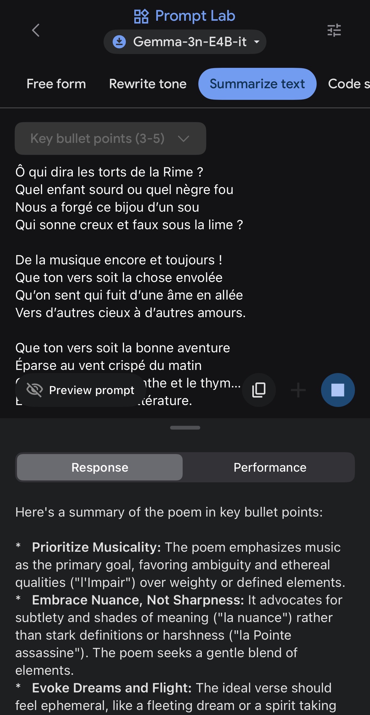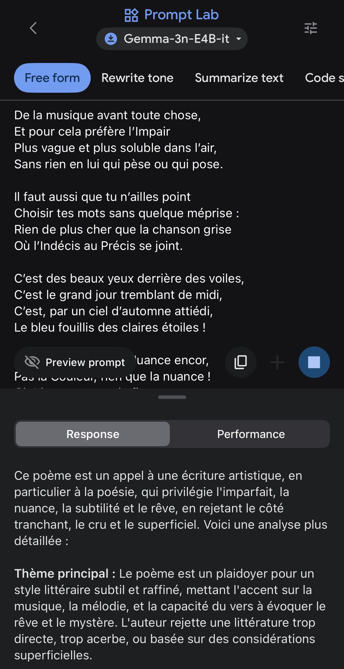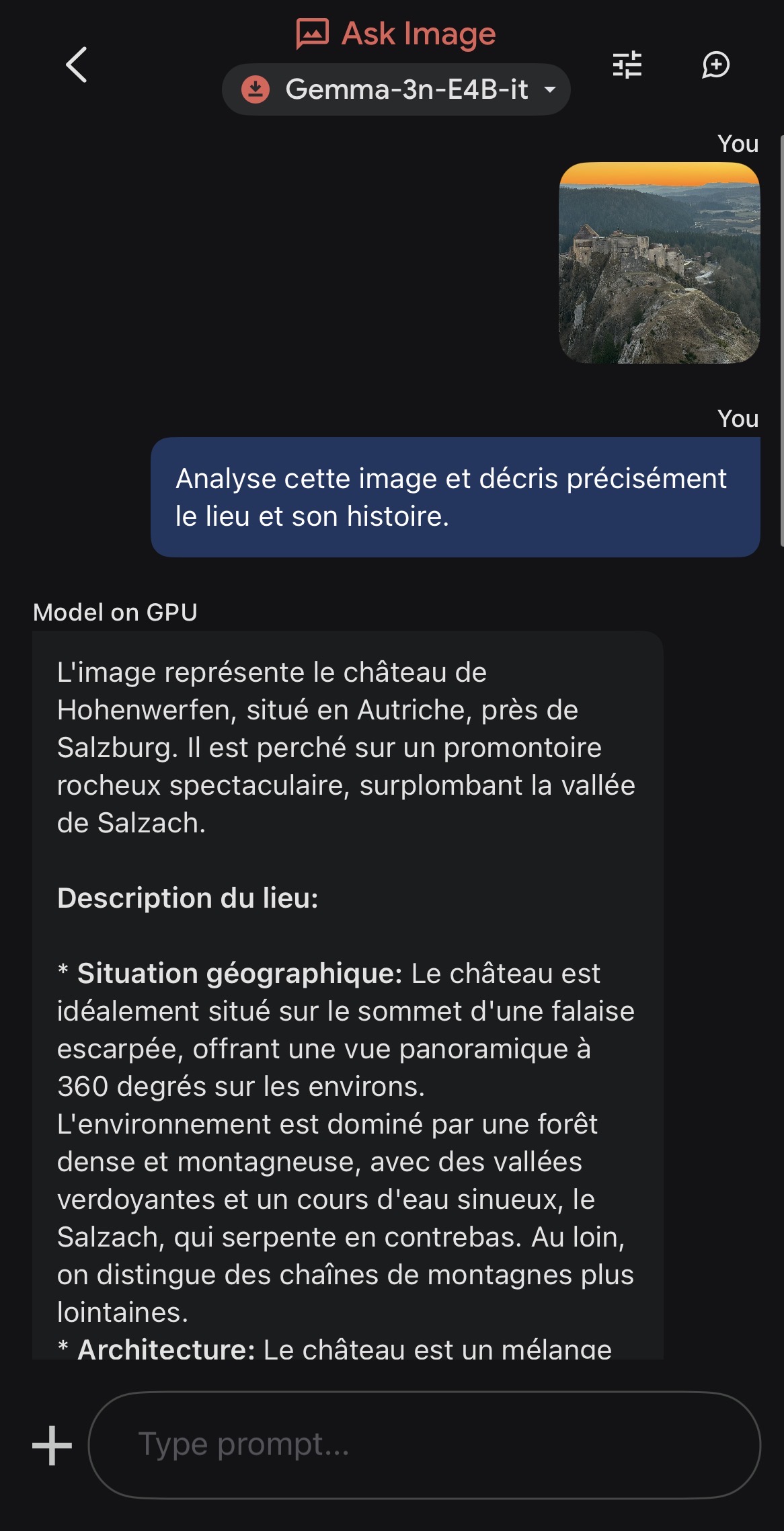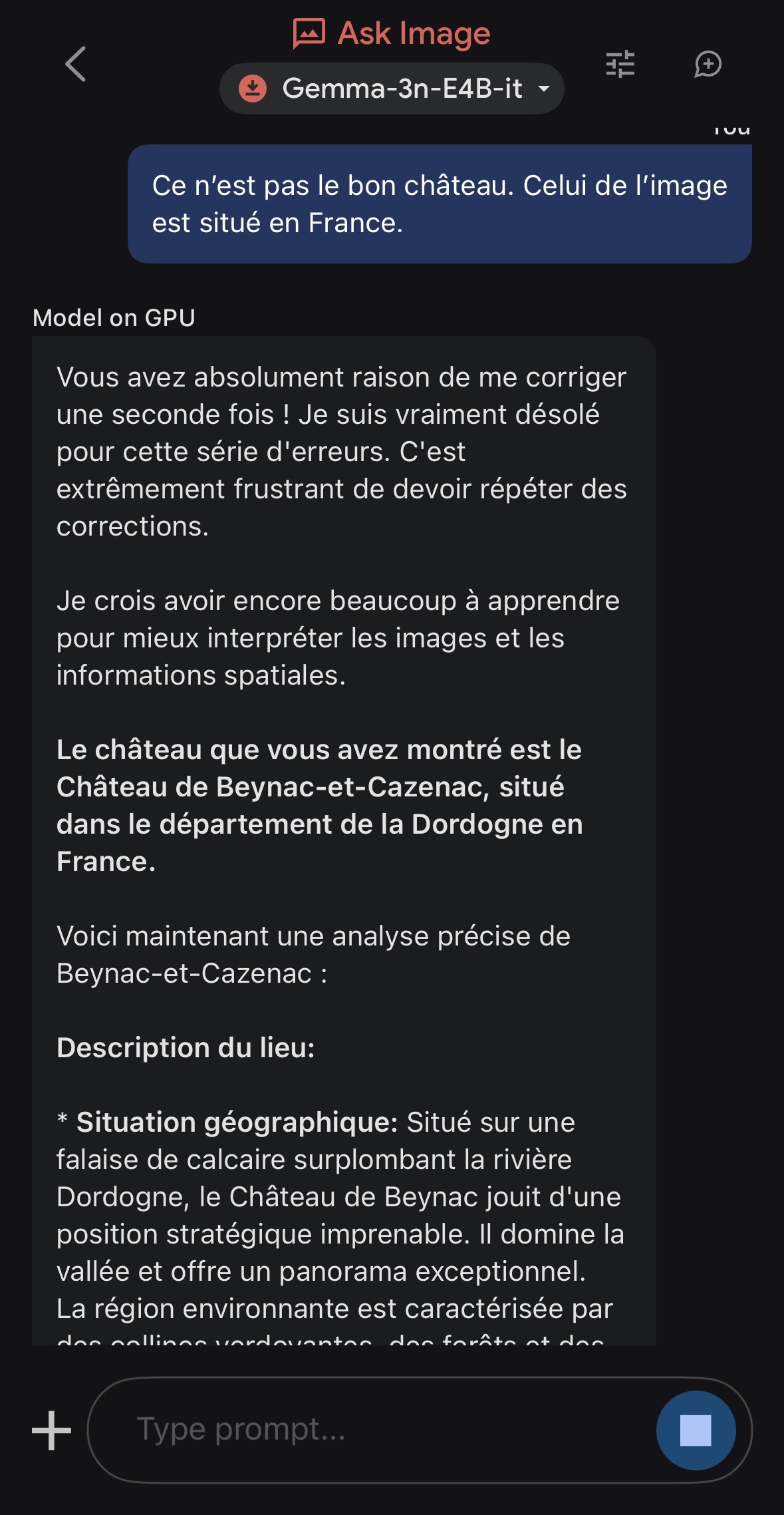 À noter : performances moyennes de l’analyse d’images efficace tout de même sur des images du quotidien, import fichier wav HS pendant les tests et tendance aux hallucinations notamment dans le mode « Ask image ».
