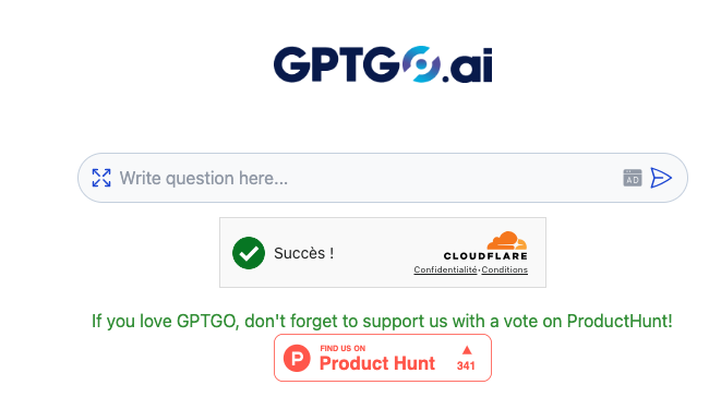 Et si Google et Chat GPT se retrouvaient dans une même interface et répondaient à la même requête ? Voici GPTGO, gratuit et sans compte (avec publicité).