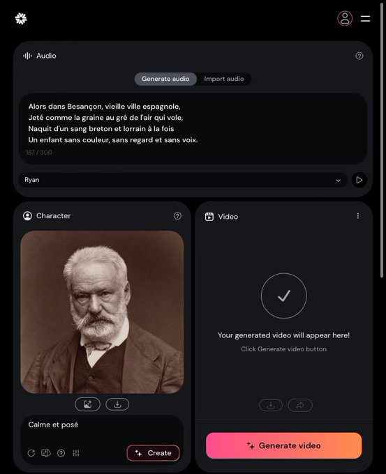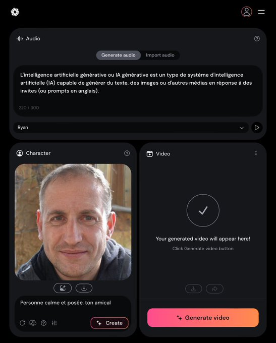 Hedra (https://hedra.com) anime des visages et les fait parler à partir d’un portrait et d’un texte, avec des voix prédéfinies ou enregistrées. Français accepté. Version beta gratuite et illimitée. Sources : http://thispersondoesnotexist.com et Wikipedia.