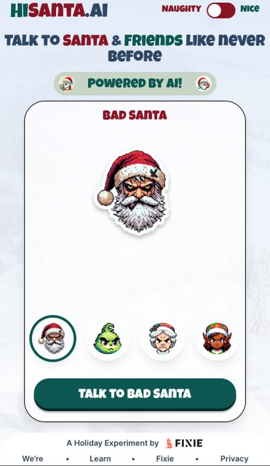Un appel au Père Noël ou ses amis avant qu’il n’arrive demain soir tout en travaillant sa prononciation en anglais ? Hi Santa (https://hisanta.ai) vous attend ! 8 personnages et possibilité d’en créer. Reconnaissance vocale et intégration des réponses