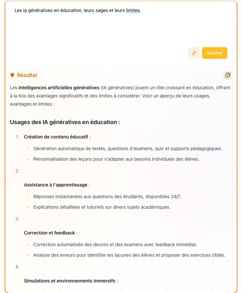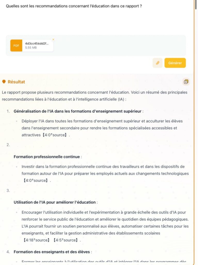 Homeworkify (https://homeworkify.im) utilise ChatGPT 4 pour répondre aux requêtes texte et/ou documents pdf et photos (plusieurs possibles). Sans compte, 5 requêtes par 24h. Tests avec rapport IA gouvernement, images perso et images Wikipedia.
