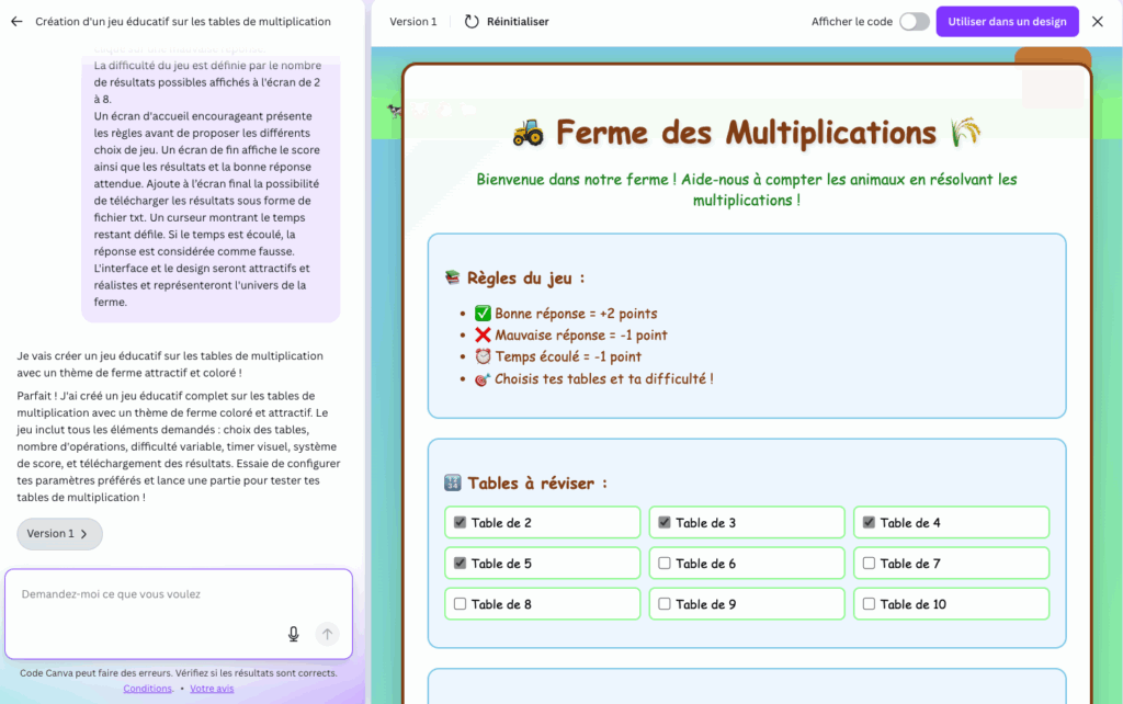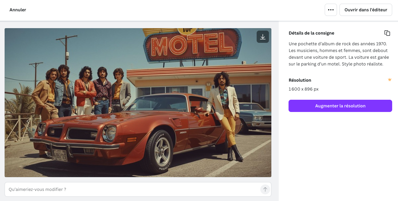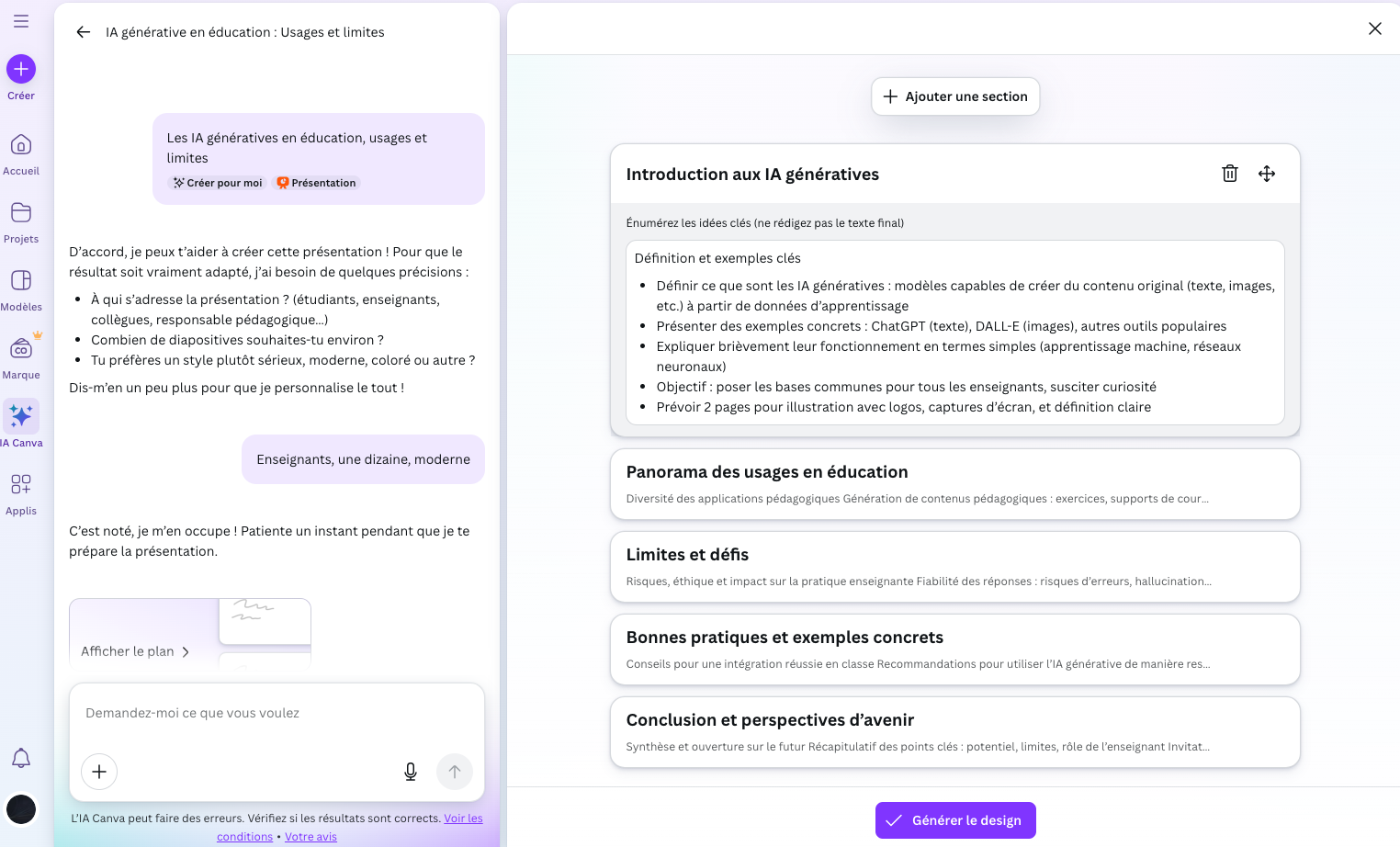 Une fois les contenus générés, les outils classiques de Canva sont disponible pour l’édition fine.