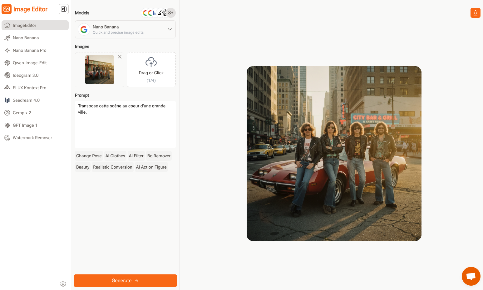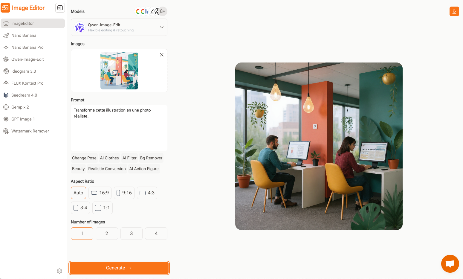 Image editor (https://imageeditor.online/) est un générateur d’images regroupant 10 modèles et spécialisé dans la modification d’images à partir d’une image source et d’une instruction.
