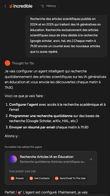 Incredible (https://www.incredible.one/) automatise des tâches à partir d’une instruction et d’un chatbot, à la manière des outils dédiés mais en langage naturel sans recours obligatoire à la configuration de chacune des briques.