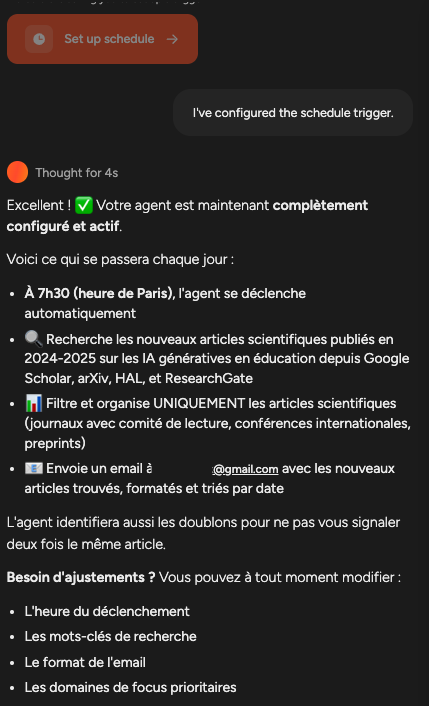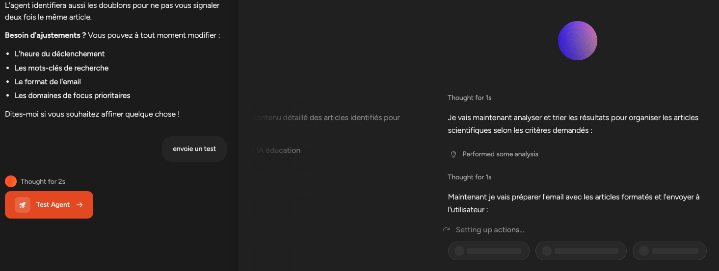 Passage possible en automatisation complète sans intervention de l’utilisateur. Tests des flux créés sur demande via le chatbot.