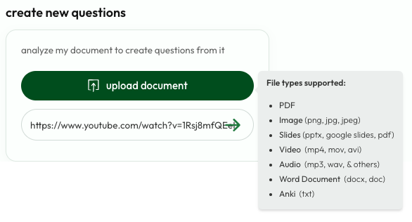 Jungle (https://jungleai.com) génère des quiz à partir de documents (7 formats dont pdf, texte, audio, vidéo, présentation) et de vidéos youtube. Questions type qcm, vrai ou faux, cas d’usages.