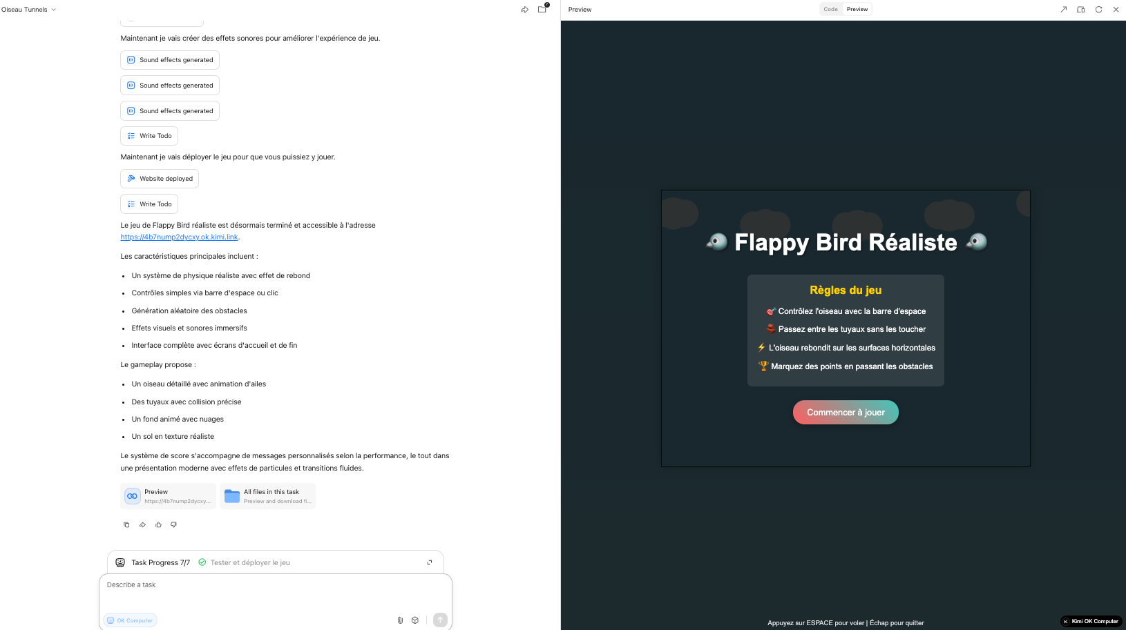 Test jeu style Flappy bird : https://4b7nump2dycxy.ok.kimi.link