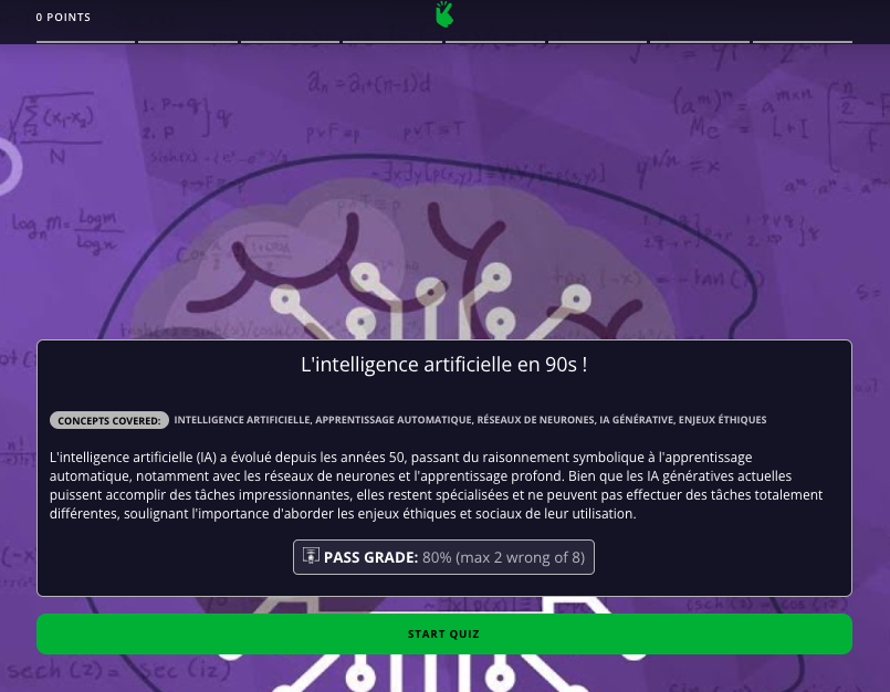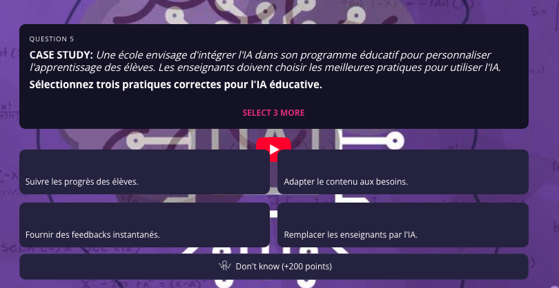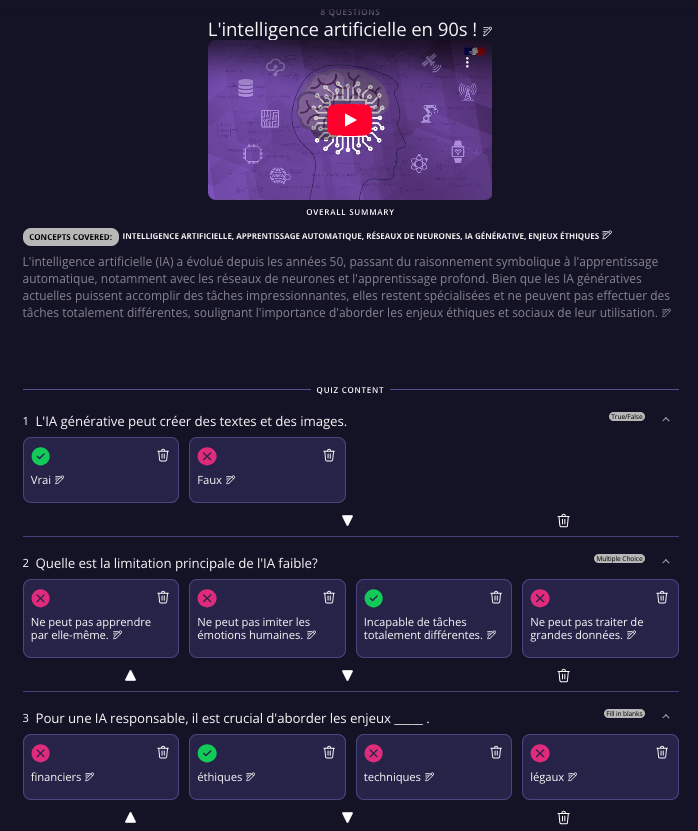 Kwizie (https://www.kwizie.ai) génère un quiz à partir d’une vidéo youtube, viméo ou audio enregistré (documents en version payante).
