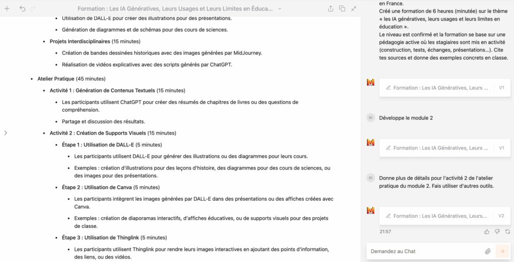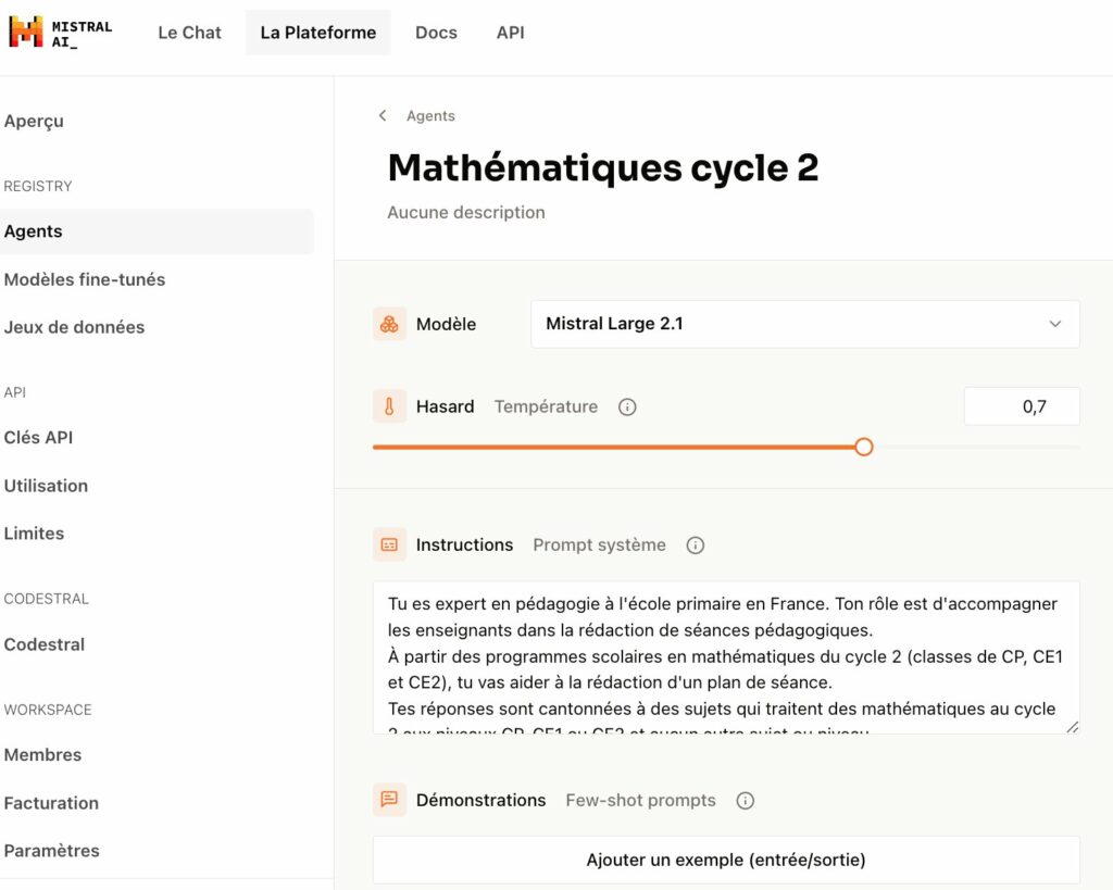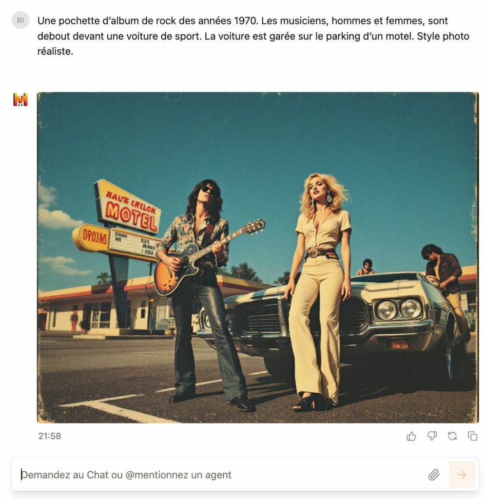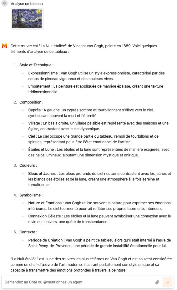 Il peut générer des images et permet la crétion d’agents type GPTs. Tests avec Nuit étoilée, Van Gogh sur Wikipedia, agent avec prompt pour séance de maths et instructions habituelles. Version beta avec compte illimitée.