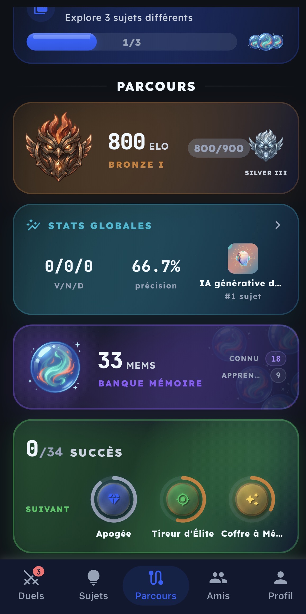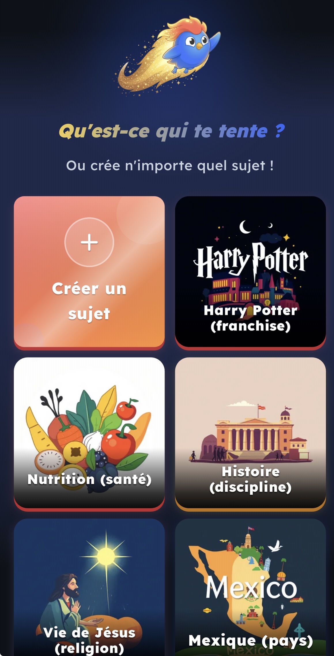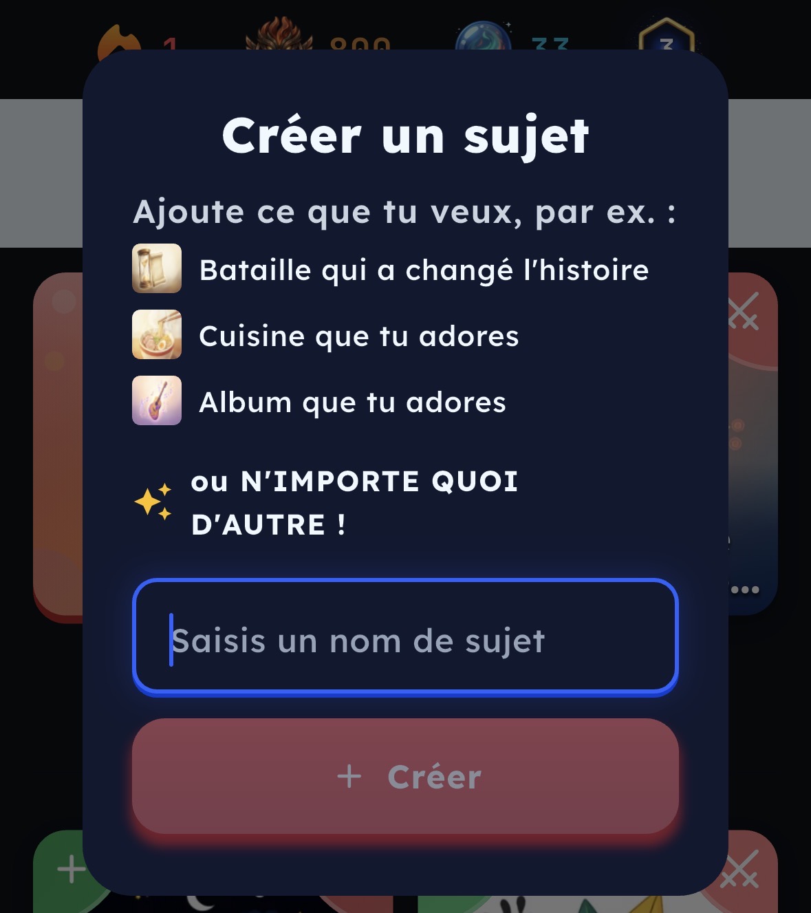 En mode duel, les quiz peuvent être envoyé par code ou joués contre des adversaires aléatoires.