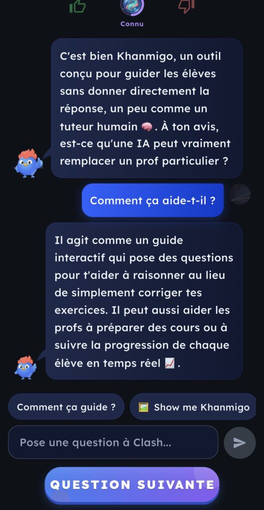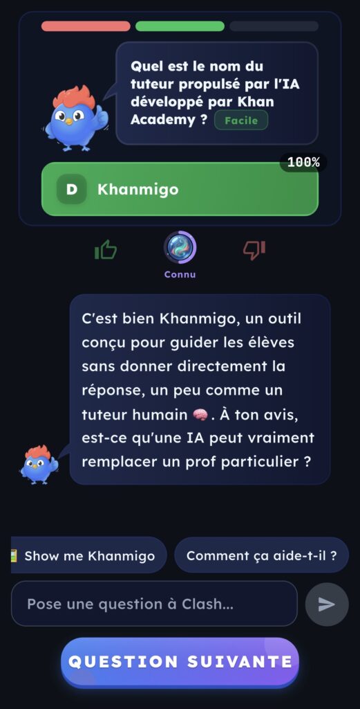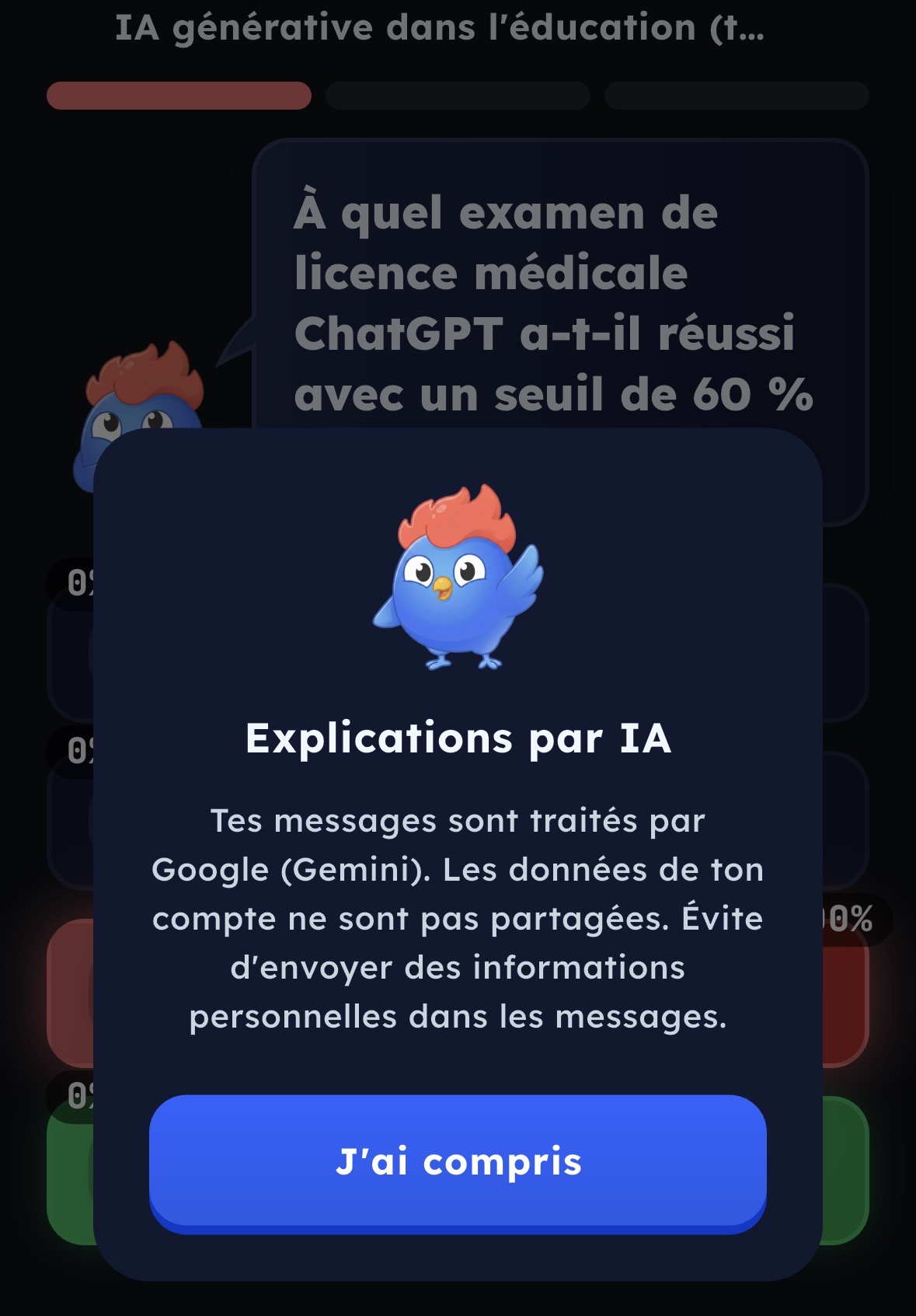 Un chatbot permet d’interroger les réponses pour les expliquer ou les approfondir.