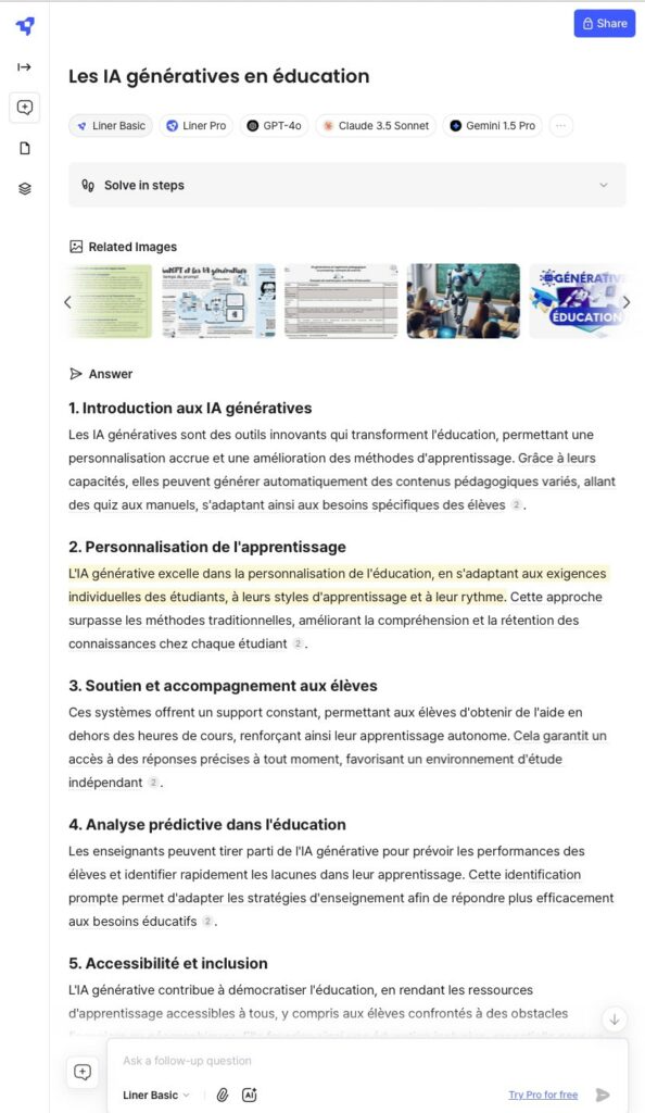 Liner (https://getliner.com) : moteur de recherche généraliste / académique avec synthèse. Création d’agents et partage. Recherches illimitées avec le modèle « Basic ».