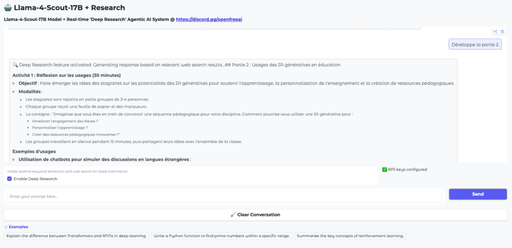 Llama 4 (présentation sur https://www.llama.com) est le nouveau modèle de langage de Meta disponible en deux versions, Scout (démo : https://huggingface.co/spaces/openfree/Llama-4-Scout-17B-Research) et Maverick (démo : https://huggingface.co/spaces/openfree/Llama-4-Maverick-17B-Research). Ils comportent 17 milliards de paramètres et acceptent jusqu’à 10 millions de tokens.