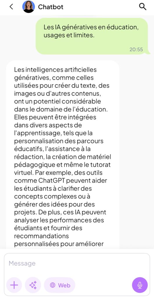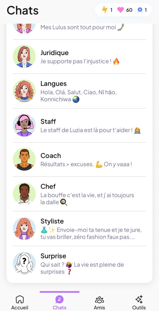 Luzia (https://www.luzia.com) regroupe dans une application (iOS, Android et WhatsApp) plusieurs fonctionnalités d’IA générative :