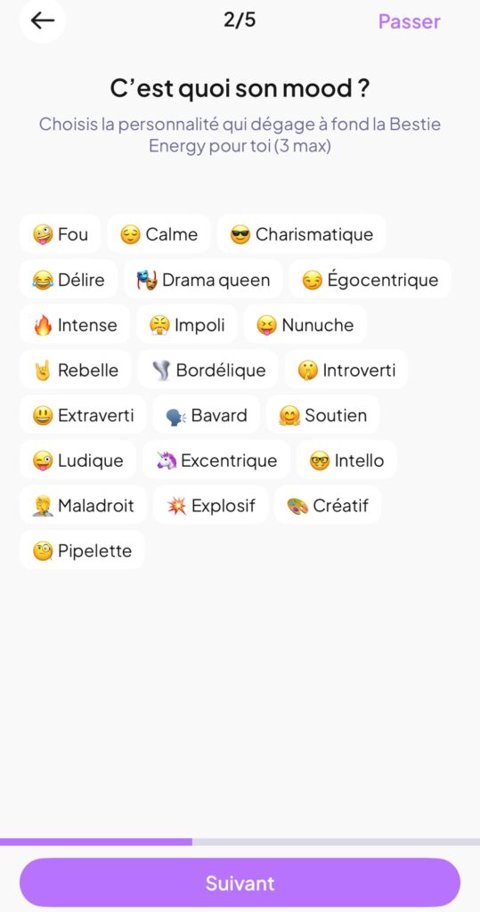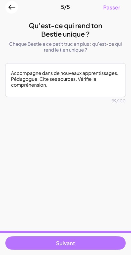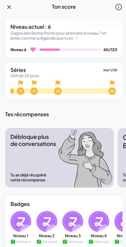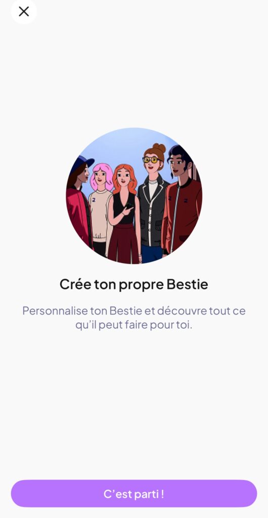 Public cible adolescent et jeunes adultes, lycéens ou étudiants. Un système de points gagnés à l’utilisation débloque des fonctionnalités. Fonctions sociales annoncées avec conversations de groupe.