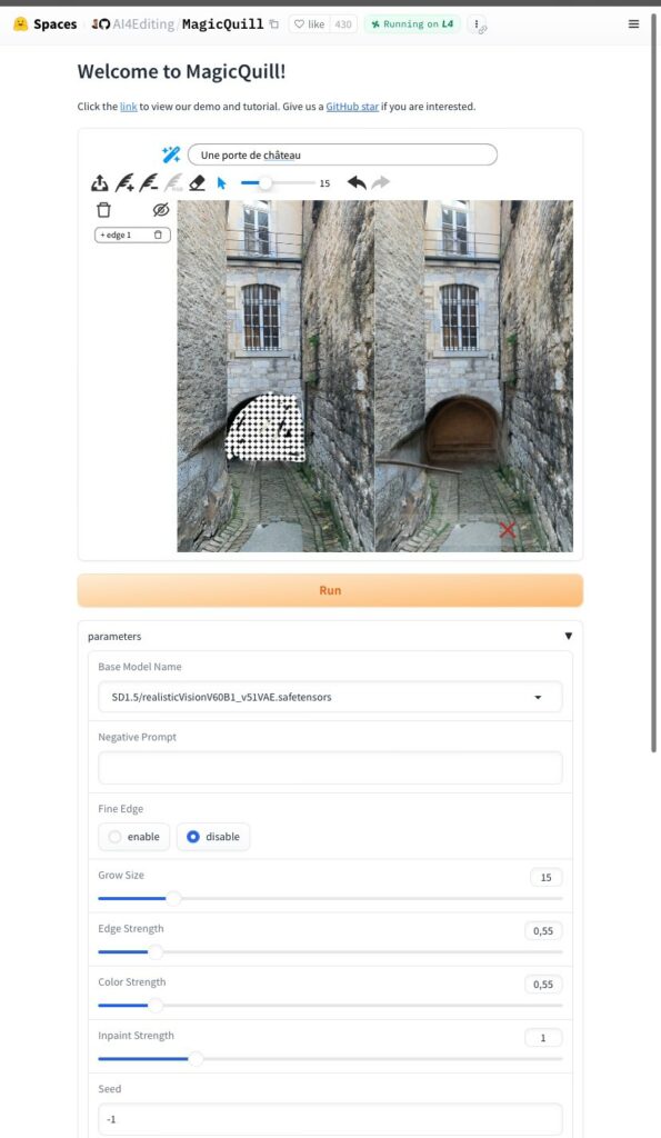 Magic Quill (https://huggingface.co/spaces/AI4Editing/MagicQuill…) permet de générer de nouvelles parties d’une image dans des parties sélectionnées. Plusieurs tailles de sélection et paramètres fins. Sans compte et open source. Source https://uneiaparjour.fr/human-generator/… et image perso.