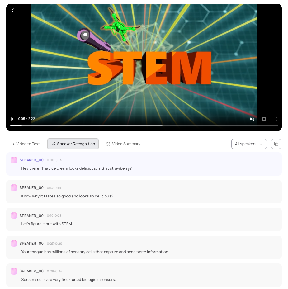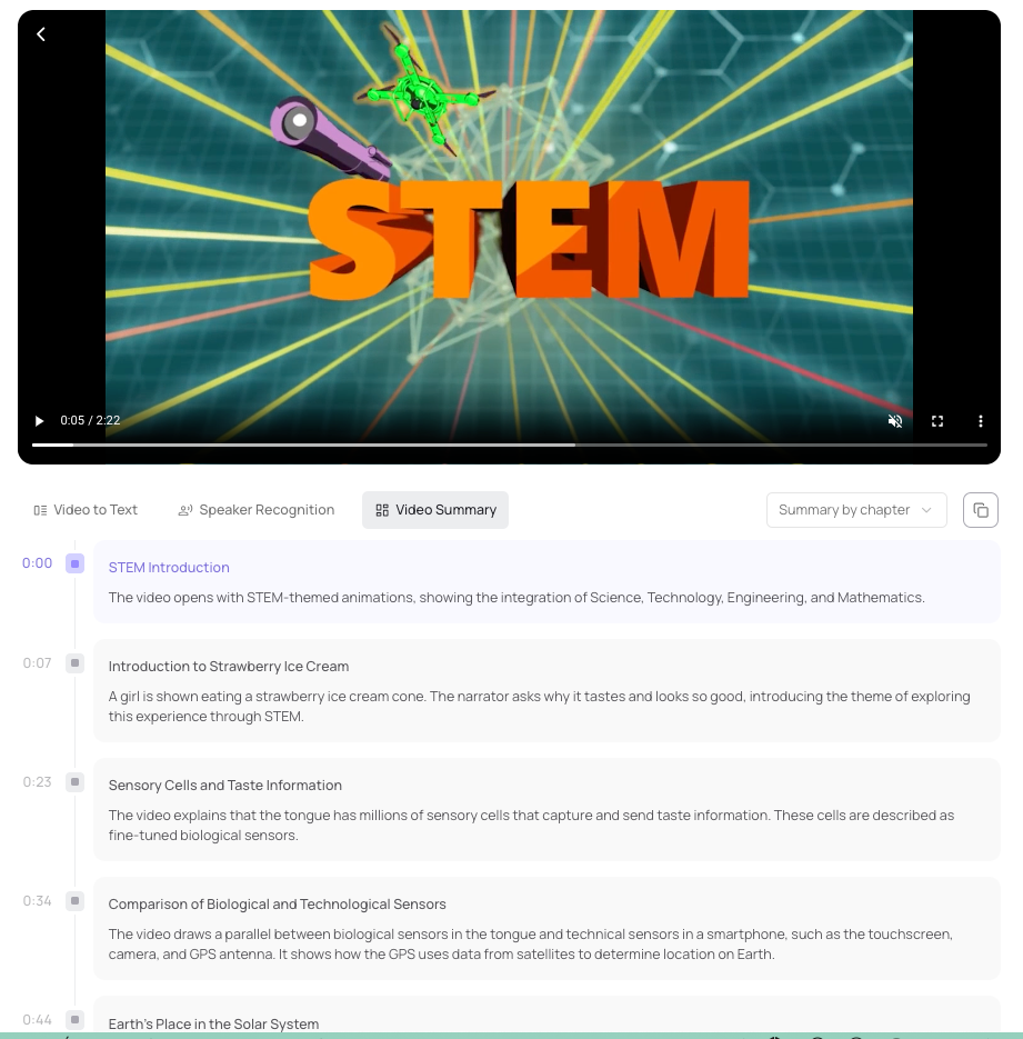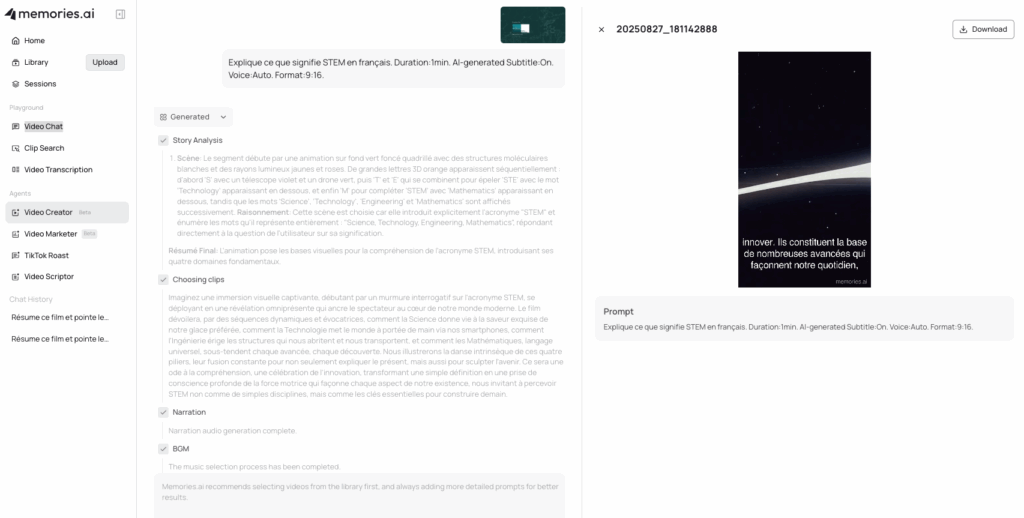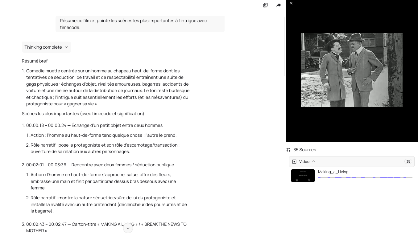 Les vidéos peuvent être interrogées via un chatbot avec citations des passages source.