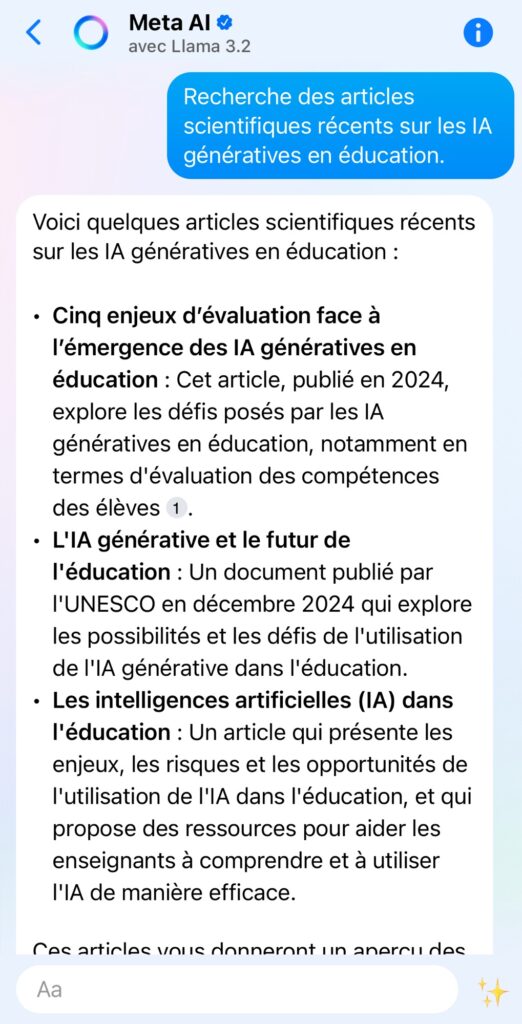 Edit 07/25 : disponible également dans la messagerie d’Instagram, désormais sous Llama 4
