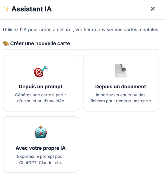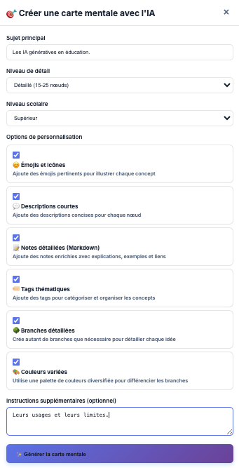 Un générateur d’instruction pour générer une carte mentale dans d’autres outils est inclus.