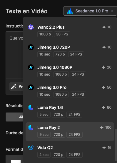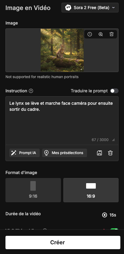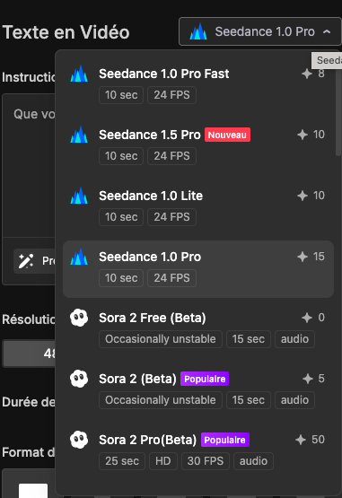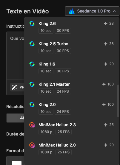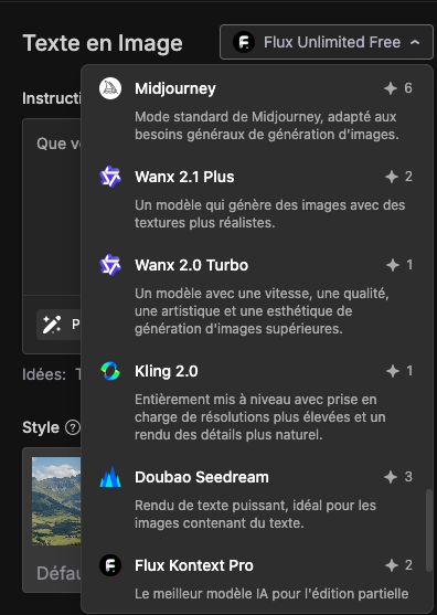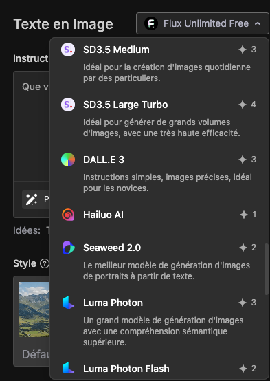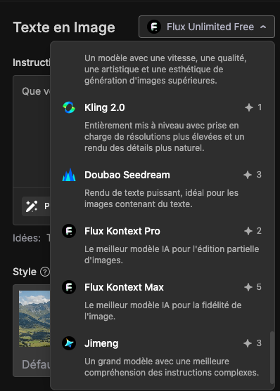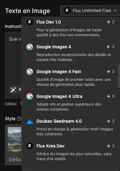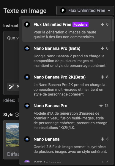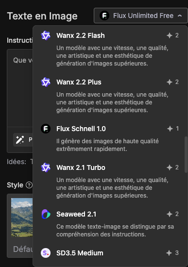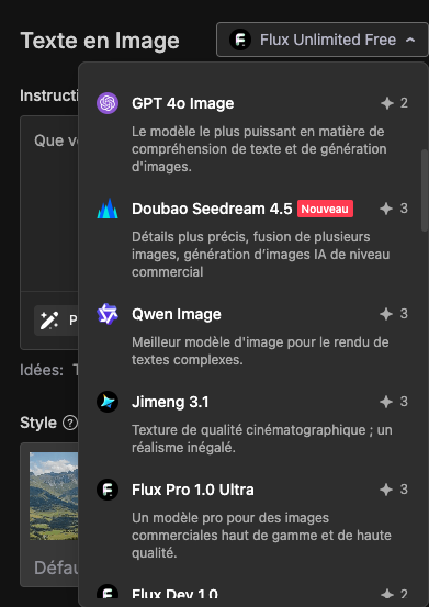 17 crédits à l’ouverture puis 2 crédits gratuits par jour. Chaque modèle nécessite un nombre de crédits différents.