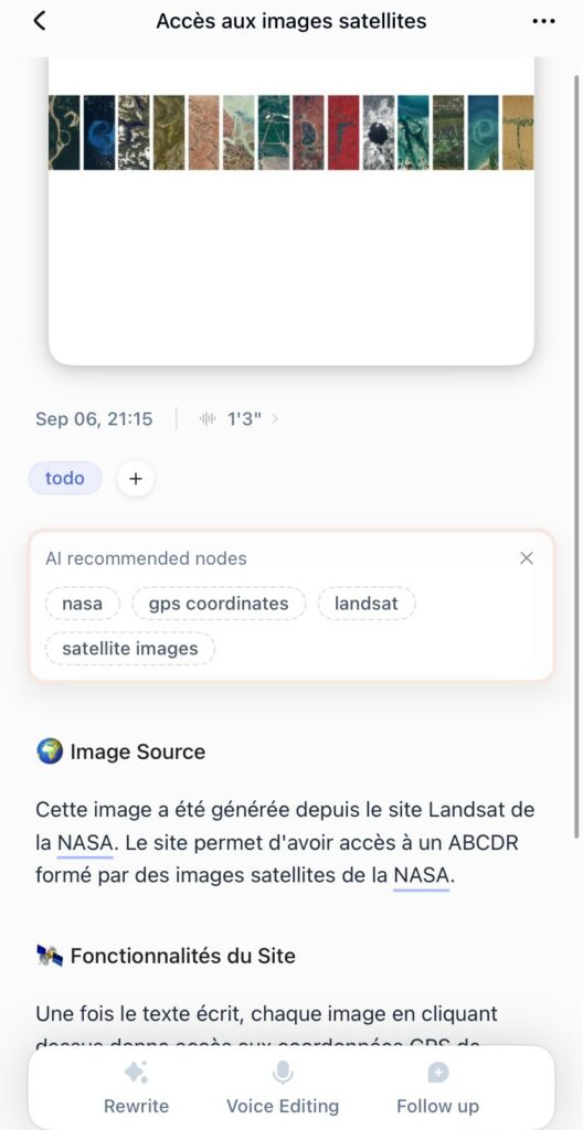 Ajout d’images possible, mots-clés et dossiers.