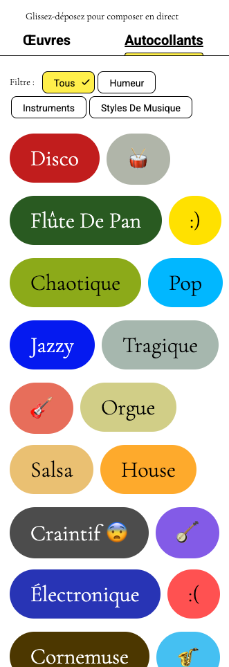 Des contraintes peuvent être ajoutées dans « Partition » via des « autocollants » influençant le morceau via des humeurs, des styles ou des instruments.