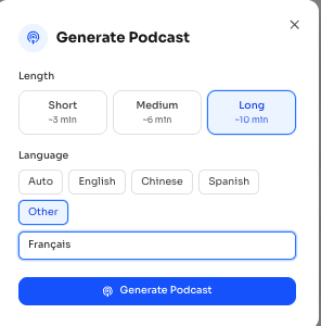 Un chatbot est proposé pour questionner globalement ou chaque thème individuellement. Un podcast peut être généré chaque jour.