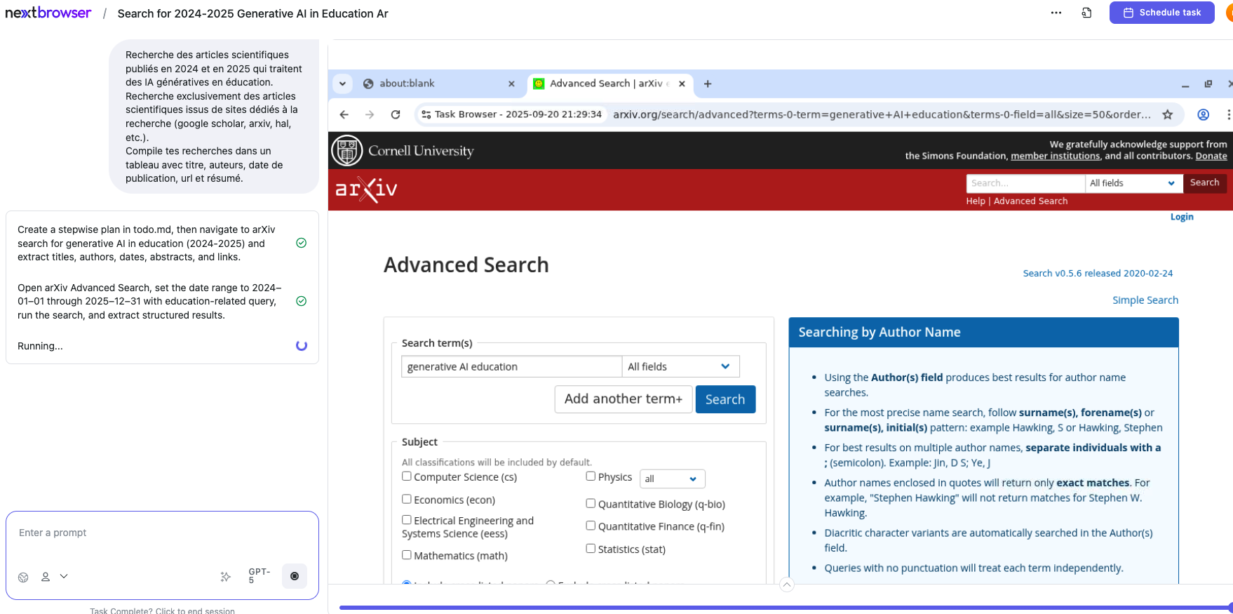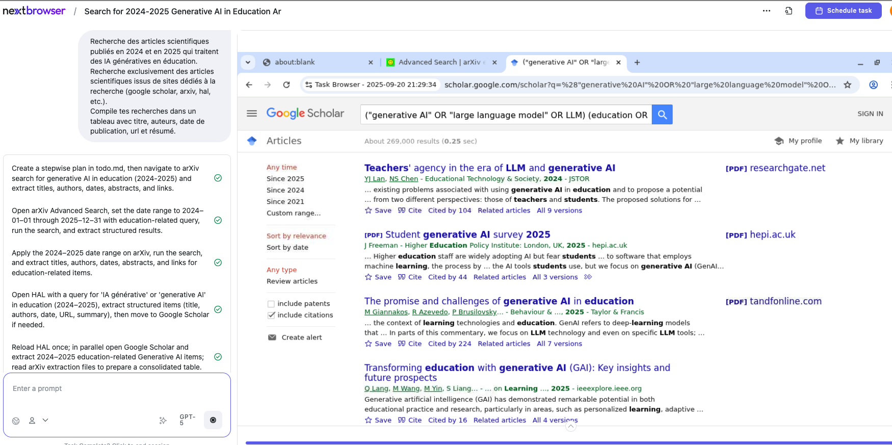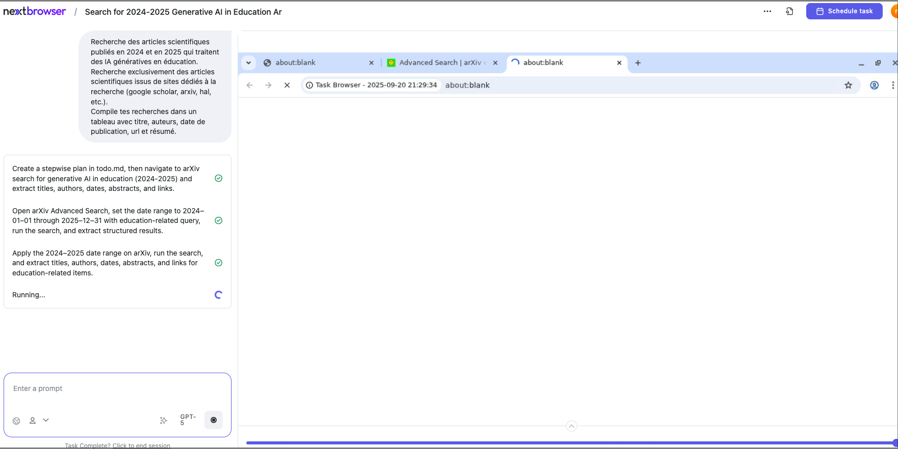 NextBrowser (app.nextbrowser.com) automatise des tâches sur le web dans son navigateur intégré à partir d’une instruction.