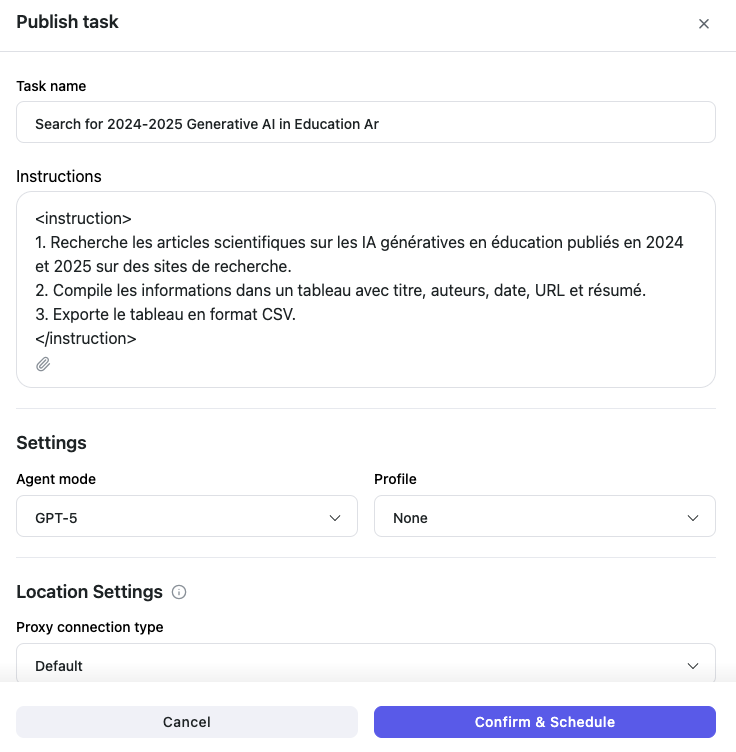 Automatisation à partir de deux modèles : un modèle « Fast » et ChatGPT 5.