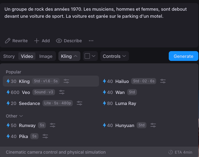 Nim (https://nim.video/) regroupe génération d’images, de vidéos et de « story » avec plusieurs modèles populaires dans un même outil.
