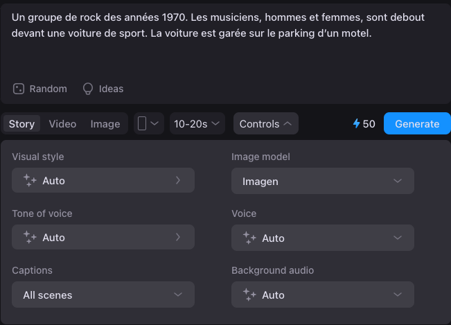 Français accepté dans les stories (préciser « génère en français).