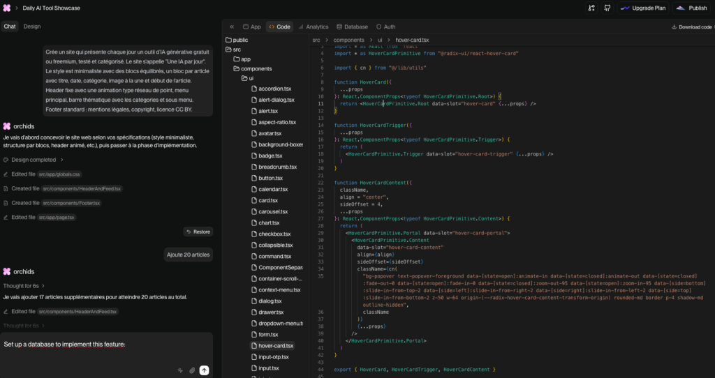 Orchids (https://www.orchids.app) génère des sites web à partir d’une instruction.