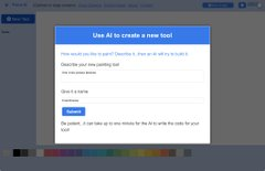 Paint AI (https://paintai.groupmind.co.uk) : un outil de dessin simple… sans outils ! Outils générés à la demande à partir d’un prompt puis modifiables si besoin d’affiner le résultat. Export png, jpg, webp et bmp. Gratuit, illimité, open source et sans compte.
