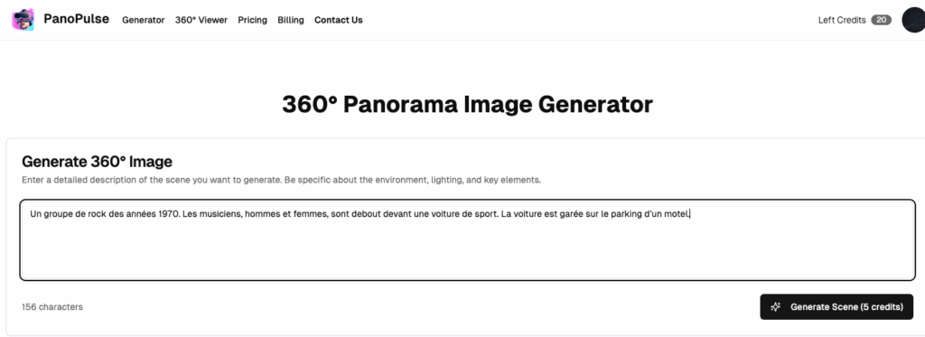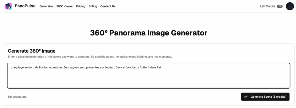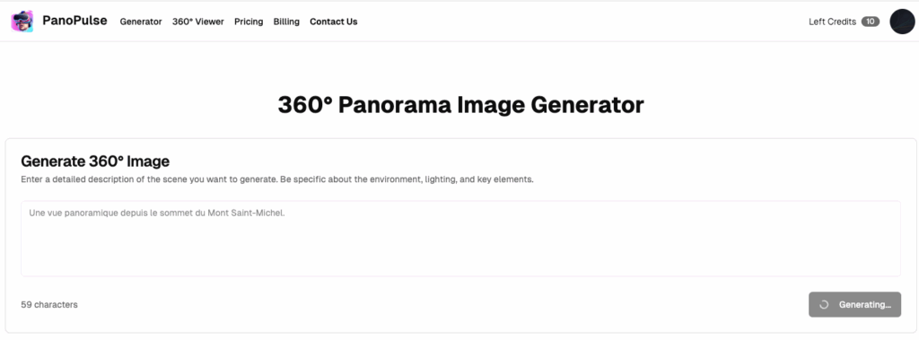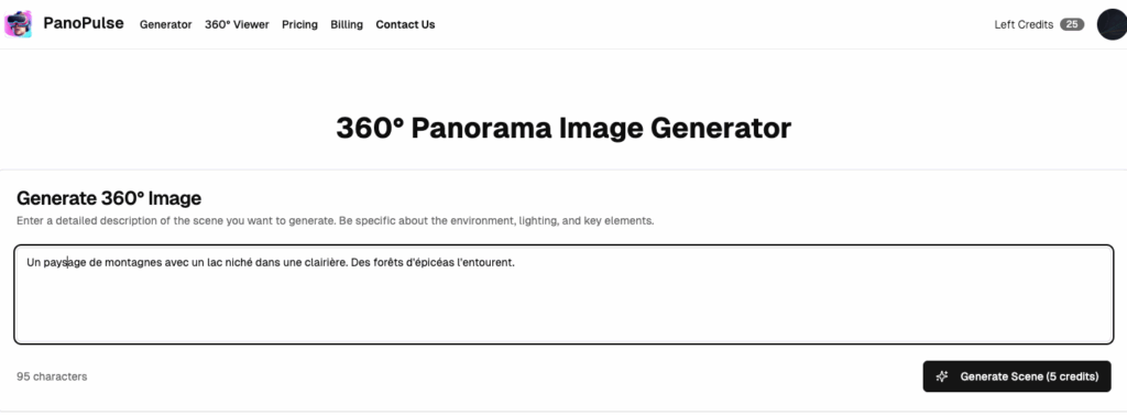 Panopulse (https://panopulse.com/) génère des images panoramiques à 360° à partir d’une instruction.