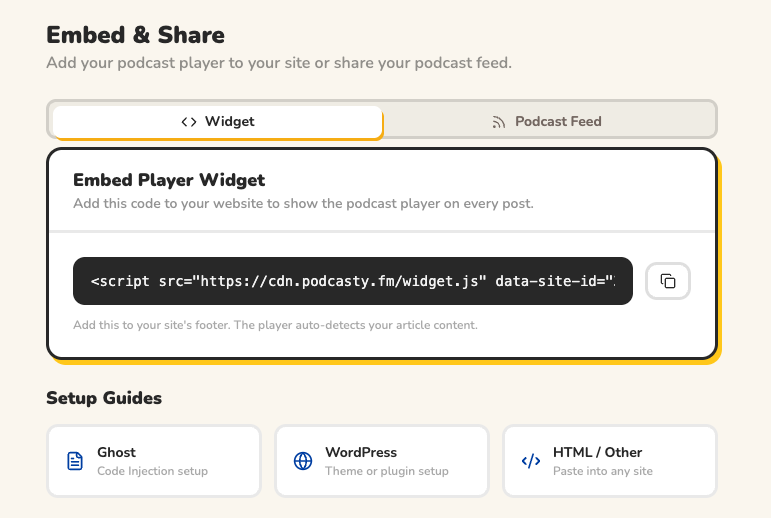 Export mp3 ou intégration par un lecteur sur un site ou via les applications de podcast.