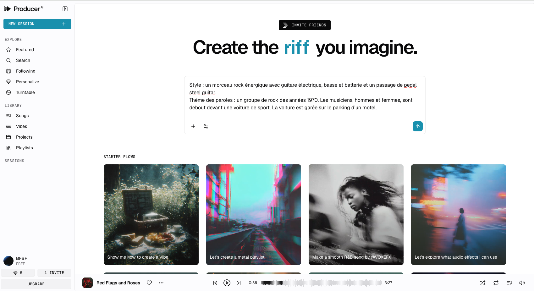Version beta sur invitation ou accessible via un compte Riffusion déjà existant.