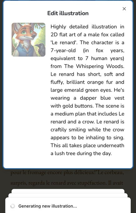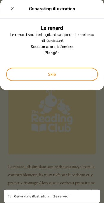 Reading club (https://readingclub.ai) génère des histoires éditables, texte et images. Version gratuite limitée en nombre de générations par jour (limite atteinte pour le test). Partage en ligne. Test : https://readingclub.ai/preview/j571vhtn2he2ddr8sscqkkrc8n6mxj4a…