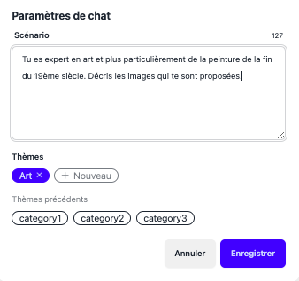 Une loupe apparaît dans le coin supérieur droit de l’image pour lancer une fenêtre de chat. Une instruction peut être ajoutée pour spécialiser la conversation.