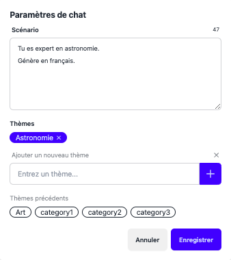 Conversations parfois en anglais, spécifier « Génère en français ».