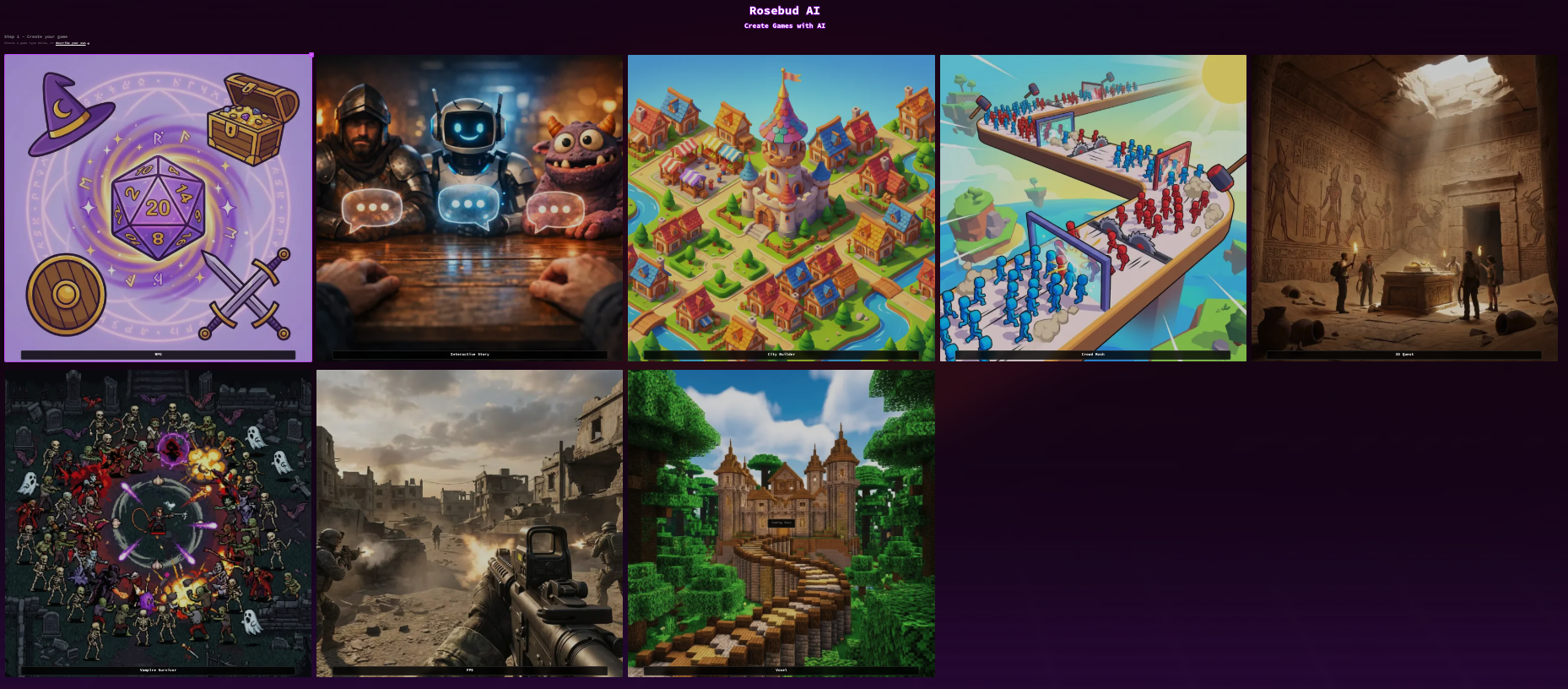 Rosebud (https://rosebud.ai/) génère des jeux à partir d’instructions.