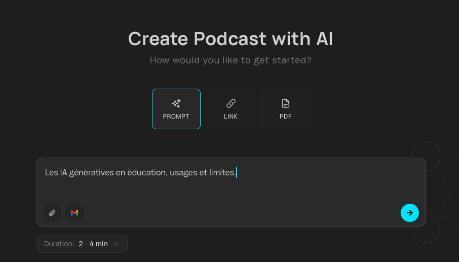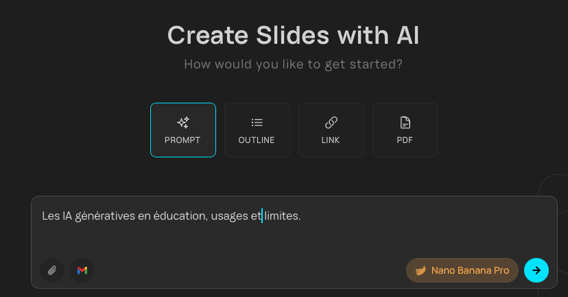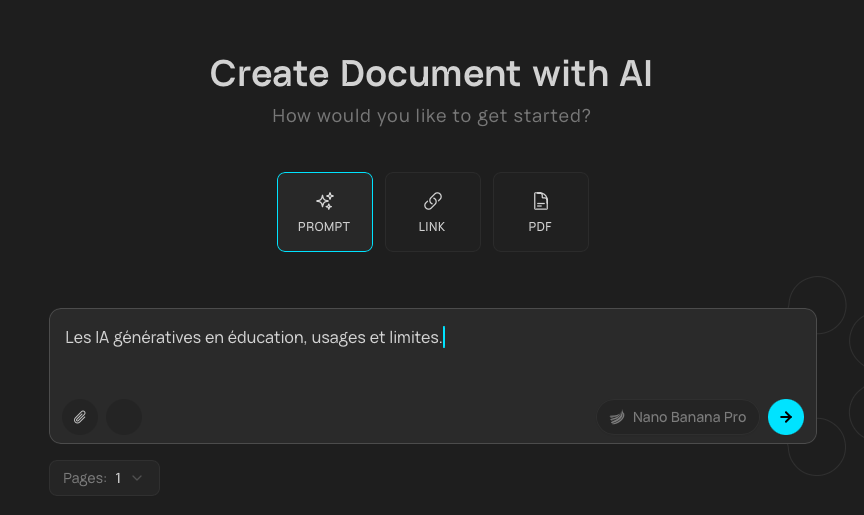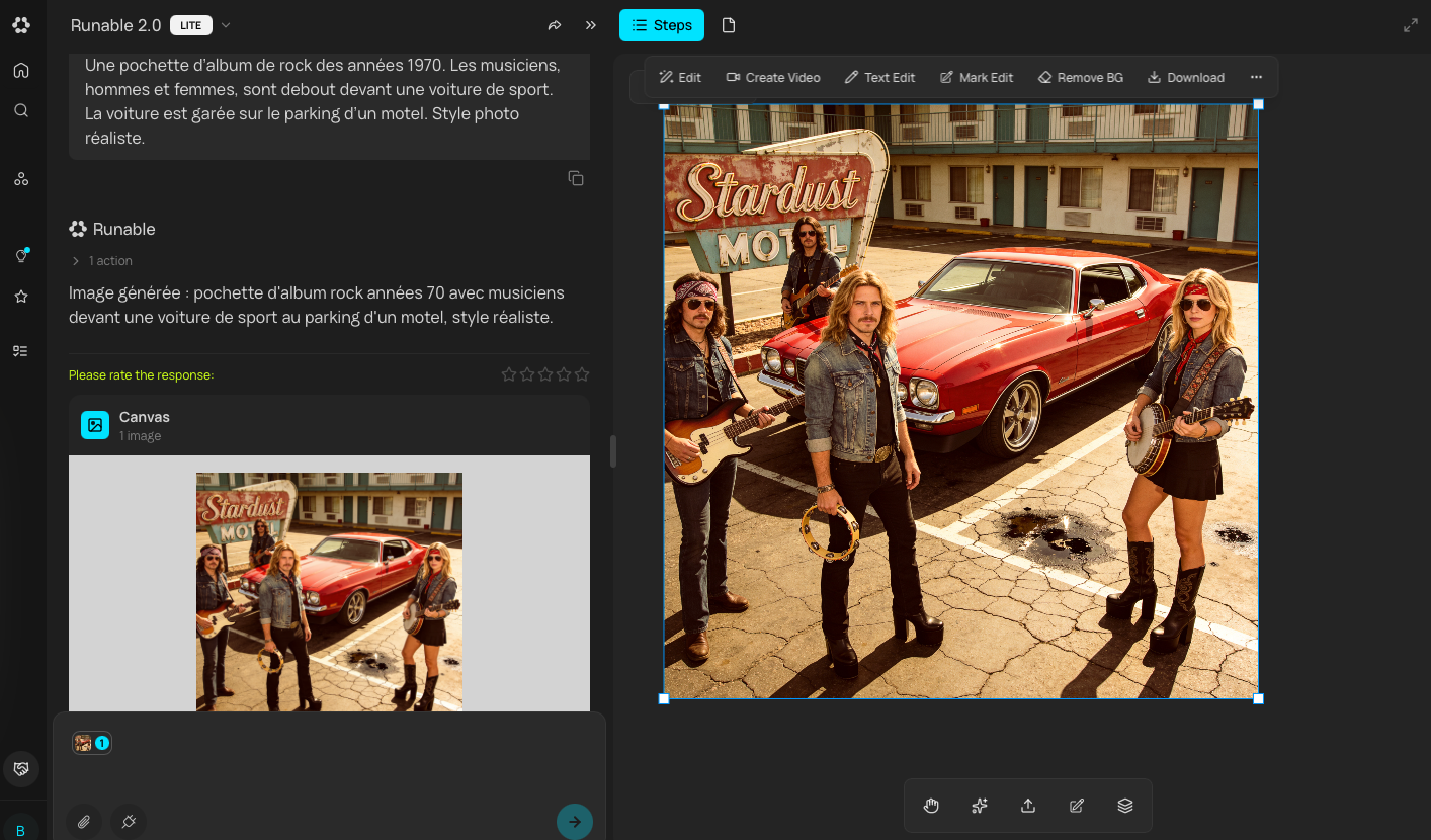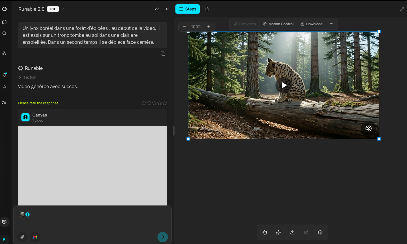 L’interface de génération regroupe un chatbot et un tableau infini.